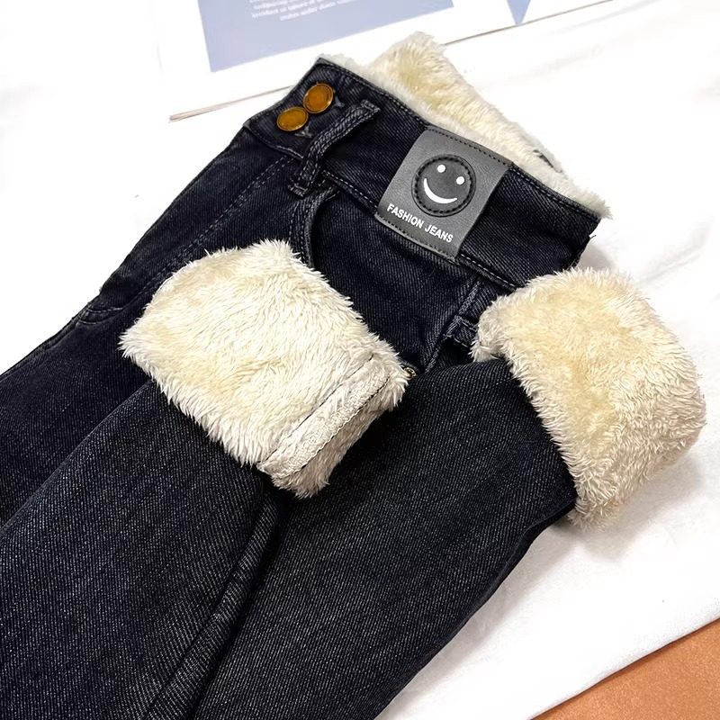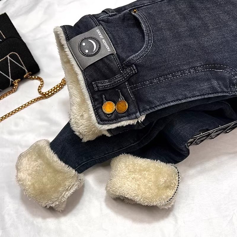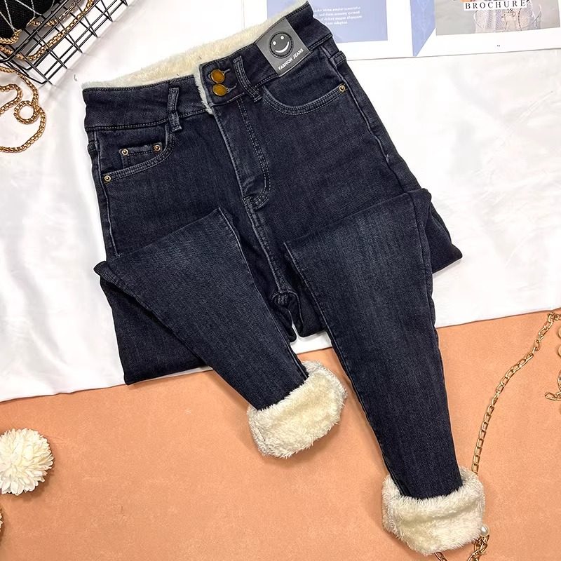 特厚加绒牛仔裤女冬季加厚2025年新款羊羔绒高腰显瘦紧身小脚长裤