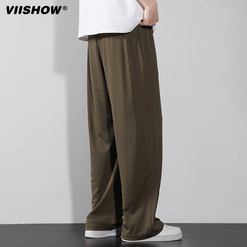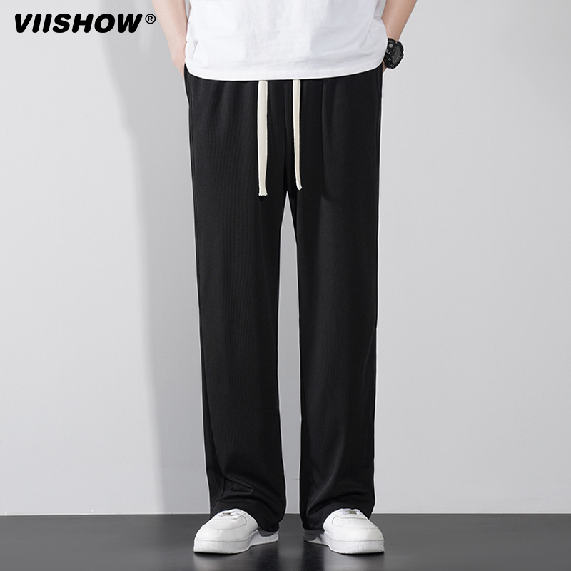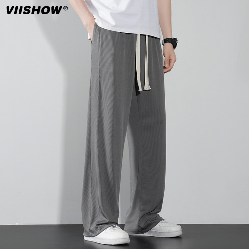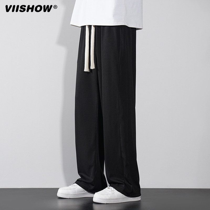 VIISHOW夏季薄款速干冰丝休闲裤男垂感直筒西裤抽绳运动宽松长裤