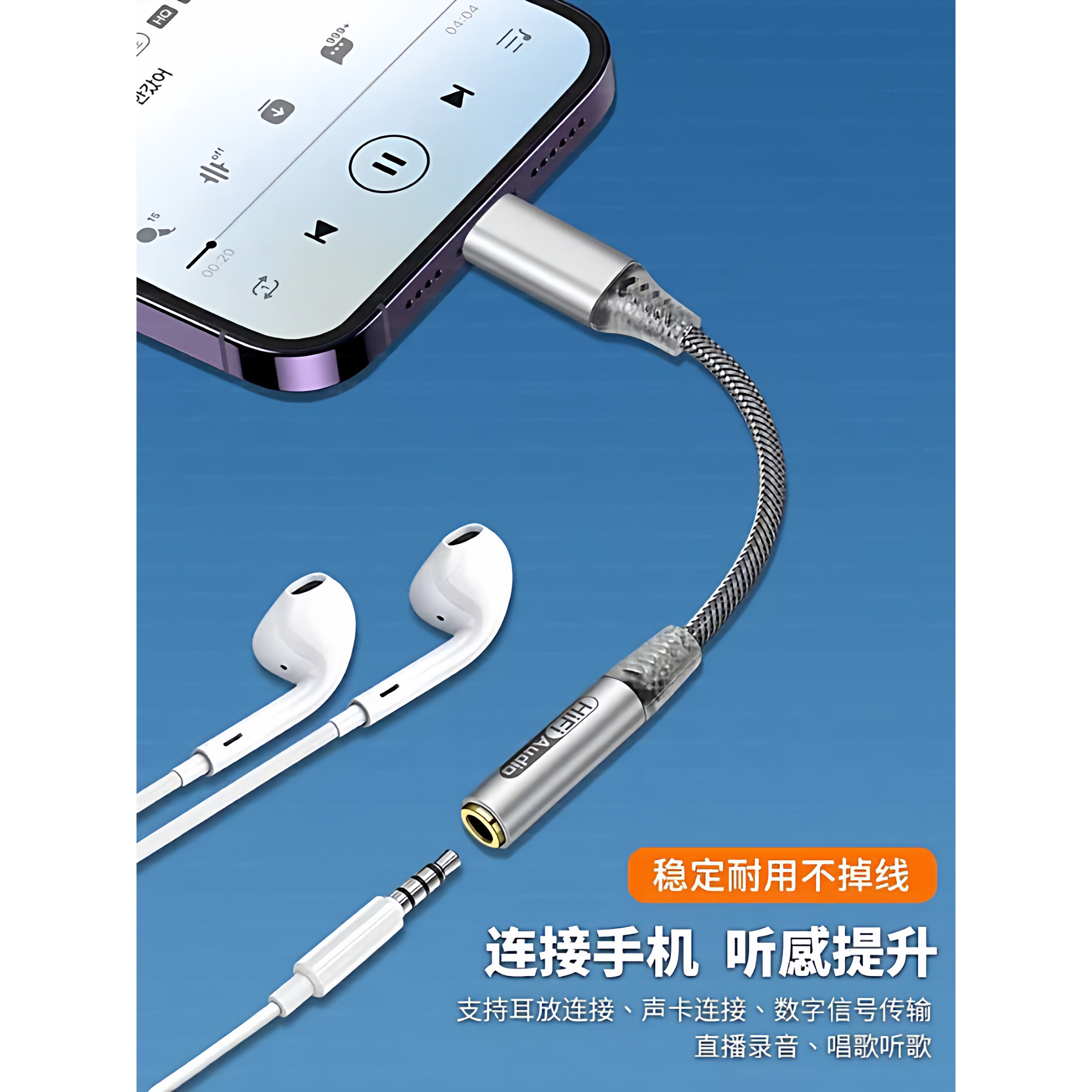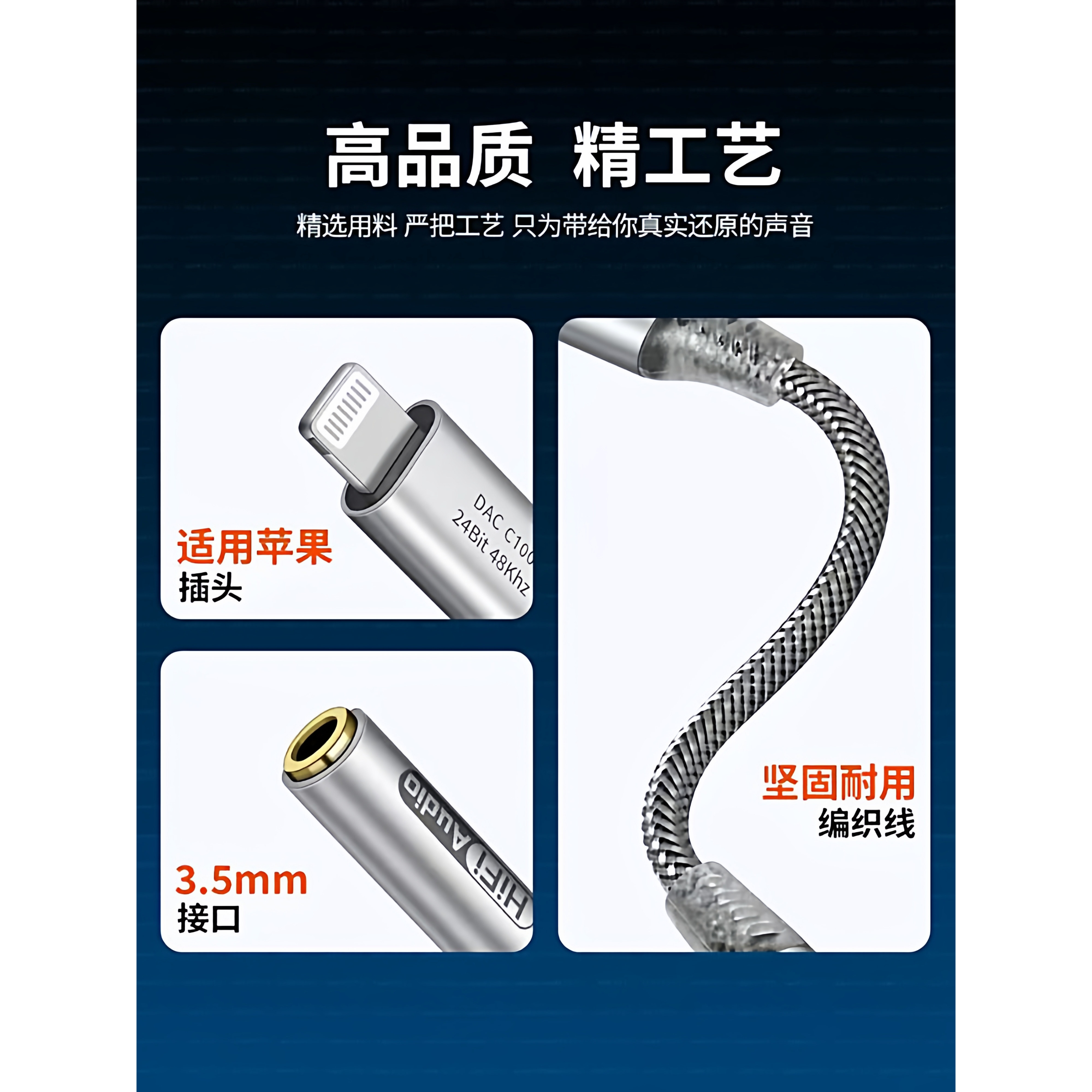 适用苹果c100解码版耳放小尾巴Lightning转3.5音频解码器DAC数字