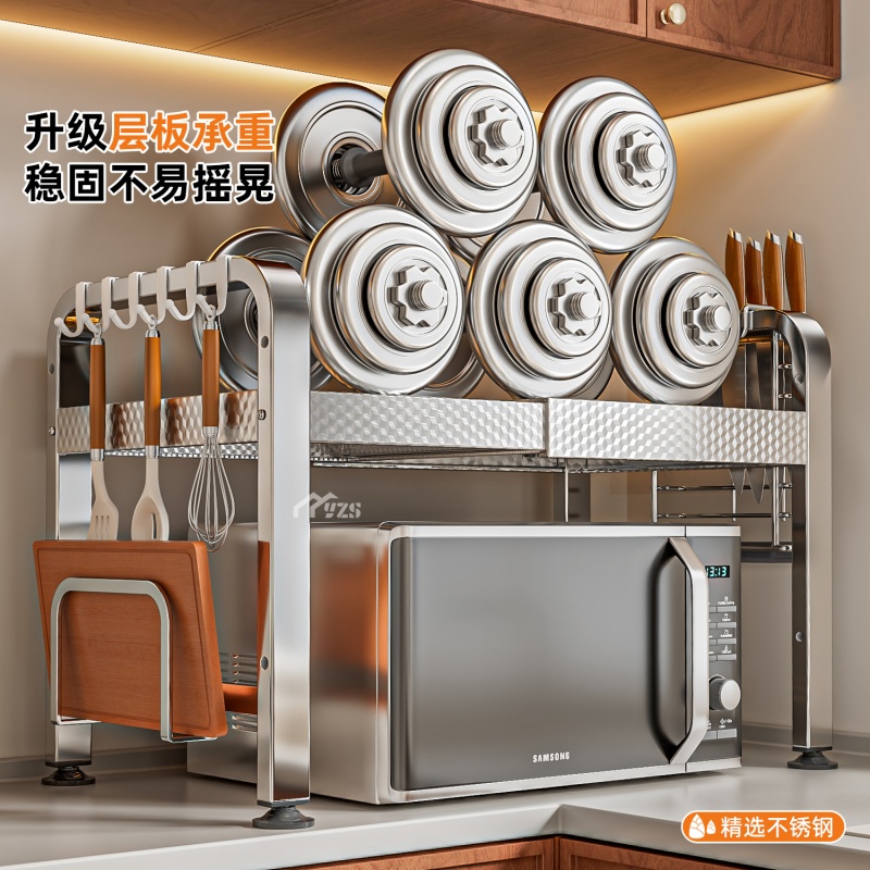 不锈钢印花微波炉置物架厨房多功能支架家用台面烤箱电饭煲收纳架
