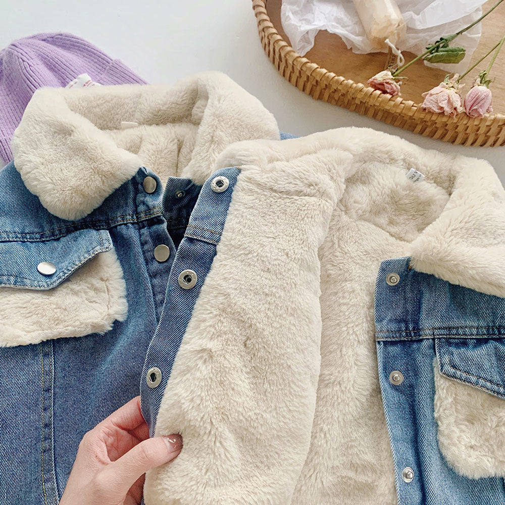 男童加绒加厚牛仔外套2025冬装新款女童洋气韩版牛仔衣宝宝上衣潮