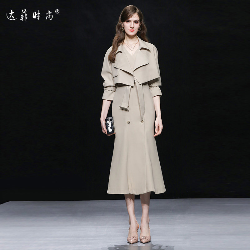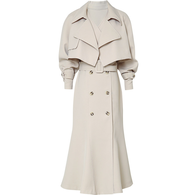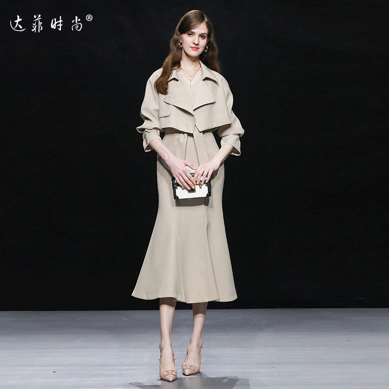 2026春装新款法式优雅气质简约短款风衣+鱼尾马甲韩剧女主两件套