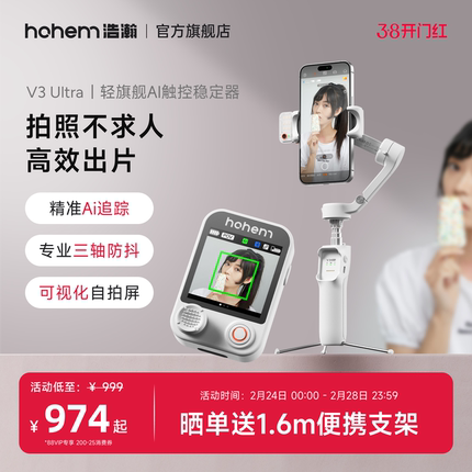 浩瀚V3/V3Ultra手机云台稳定器三轴防抖手持旅行自拍摄视频vlog跟拍照自动360度旋转自拍杆直播专用设备支架