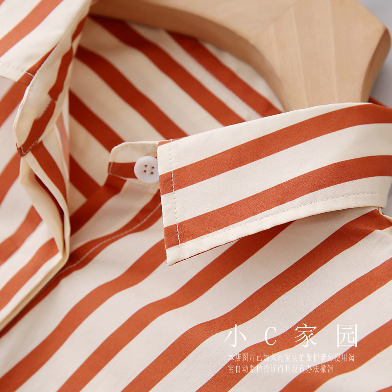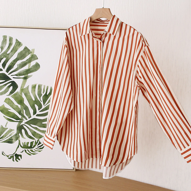 意想不到的好看!北欧简约高支棉宽松阔版显瘦休闲衬衫女橘色条纹