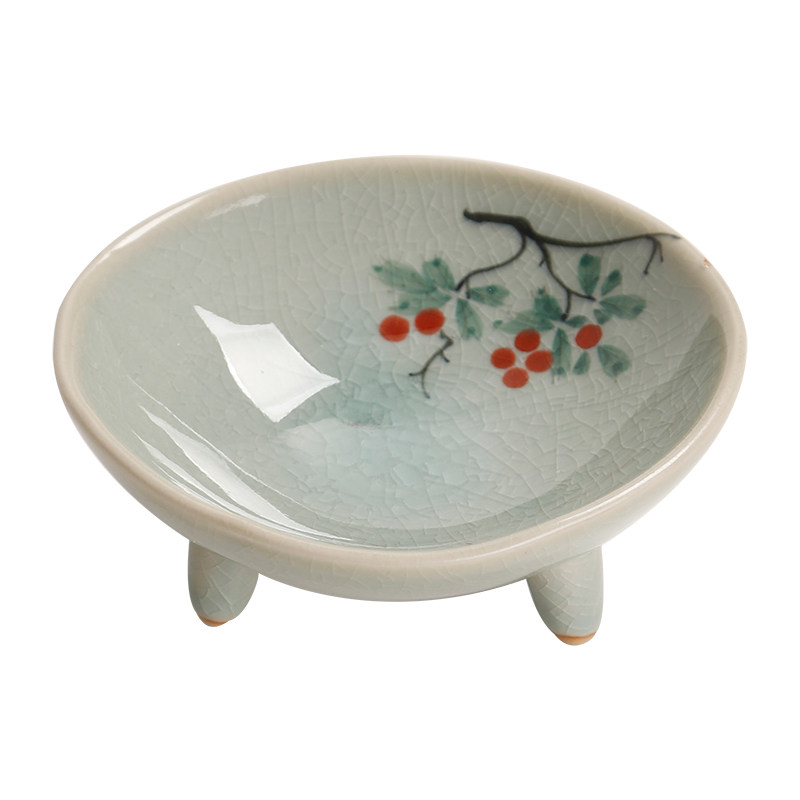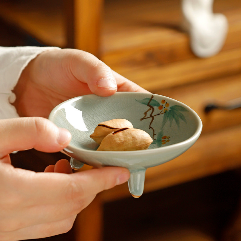 中式禅意高脚盘陶瓷创意三足茶点盘小干果盘家用托盘冰裂纹糕点盘