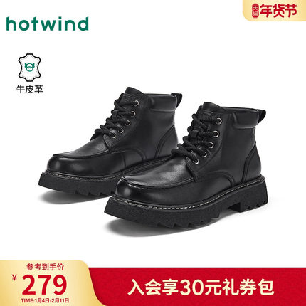 热风男鞋2025年冬季新款男士时尚靴子厚底黑色马丁靴户外短筒靴子