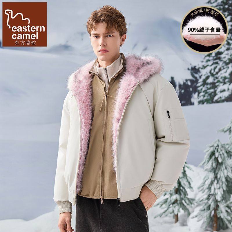 东方骆驼秋冬季新款大毛领连帽外套90绒工装短款羽绒服男女同款
