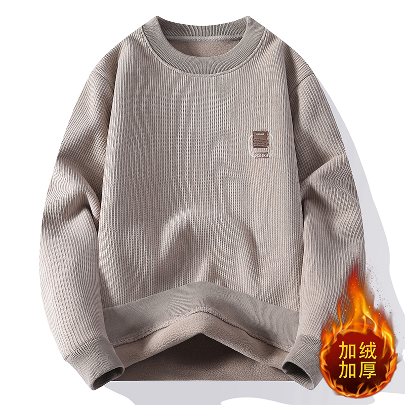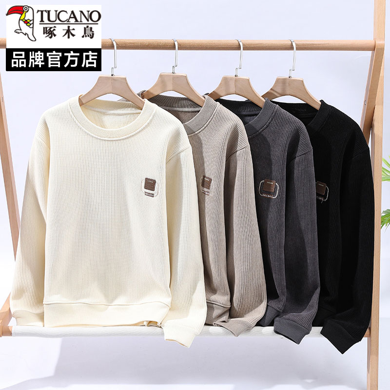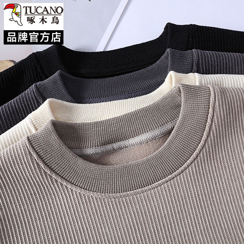 啄木鸟男士加绒加厚一体绒圆领卫衣秋冬保暖套头上衣设计感潮流