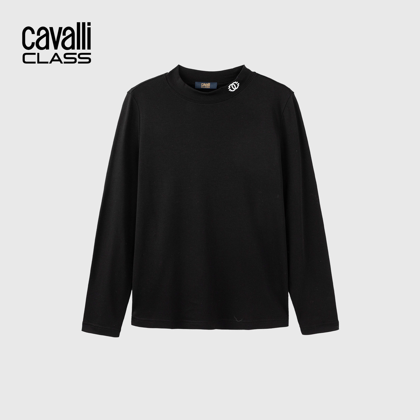 Cavalli Class卡沃利爽滑莫代尔棉长袖t恤男小标圆领修身打底衫