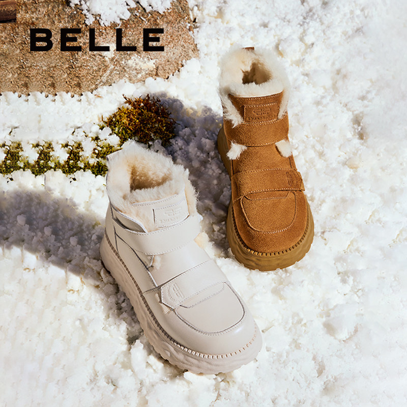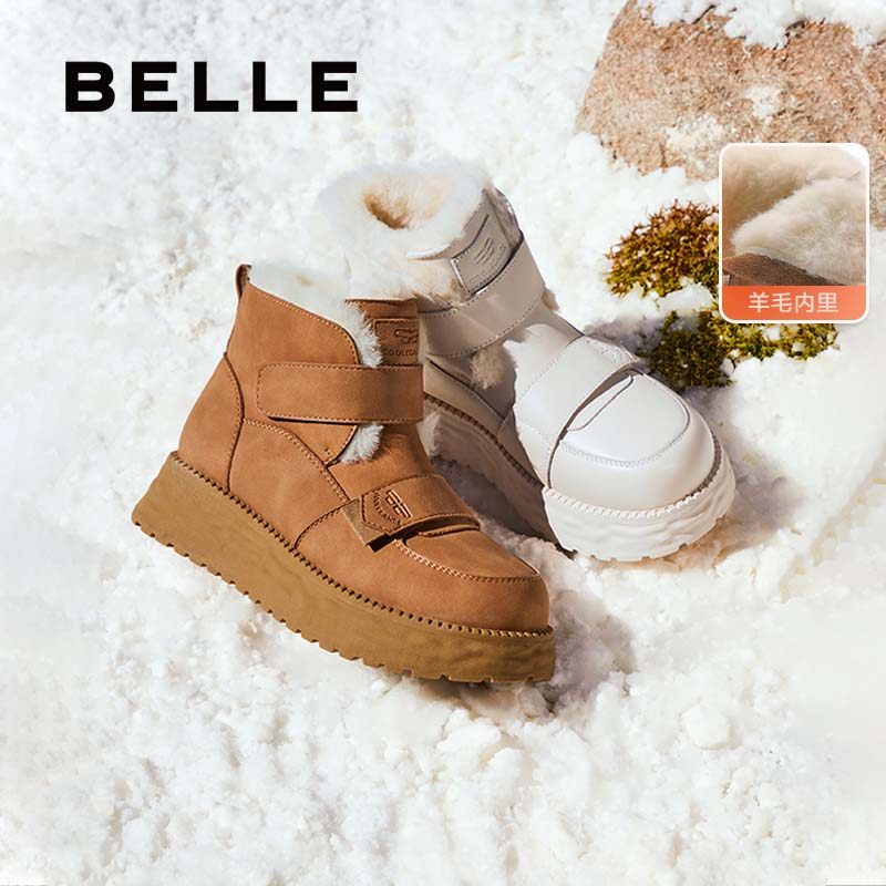 百丽厚底羊毛雪地靴女靴冬季新款加绒保暖毛毛短靴棉鞋D1X1DDD4