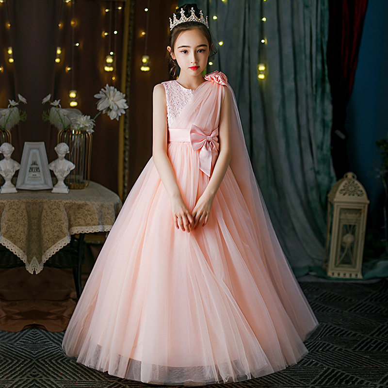 花童礼服女童连衣裙春夏中大童胖mm公主裙走秀钢琴主持蓬蓬网纱裙