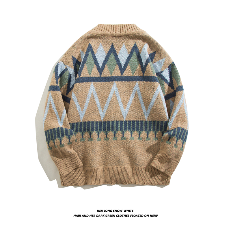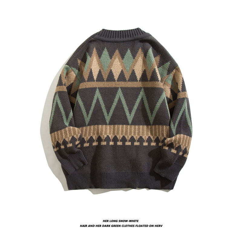 日系复古提花开衫毛衣男秋冬季ins潮流加厚百搭菱格休闲针织外套