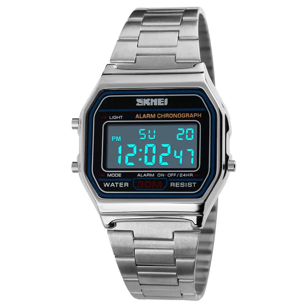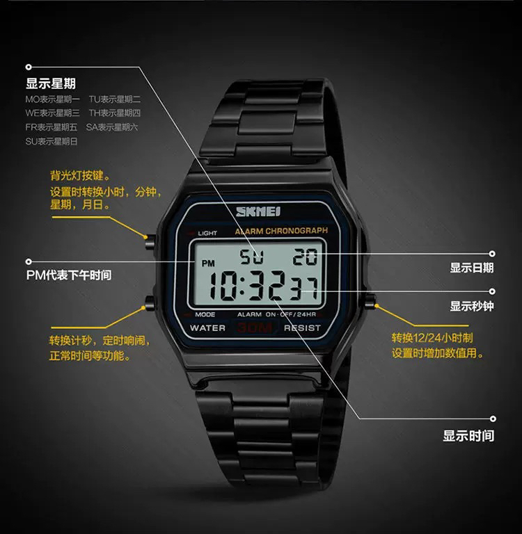 时刻美经典小方块男手表夜光数显多功能腕表潮流防水钢带电子手表
