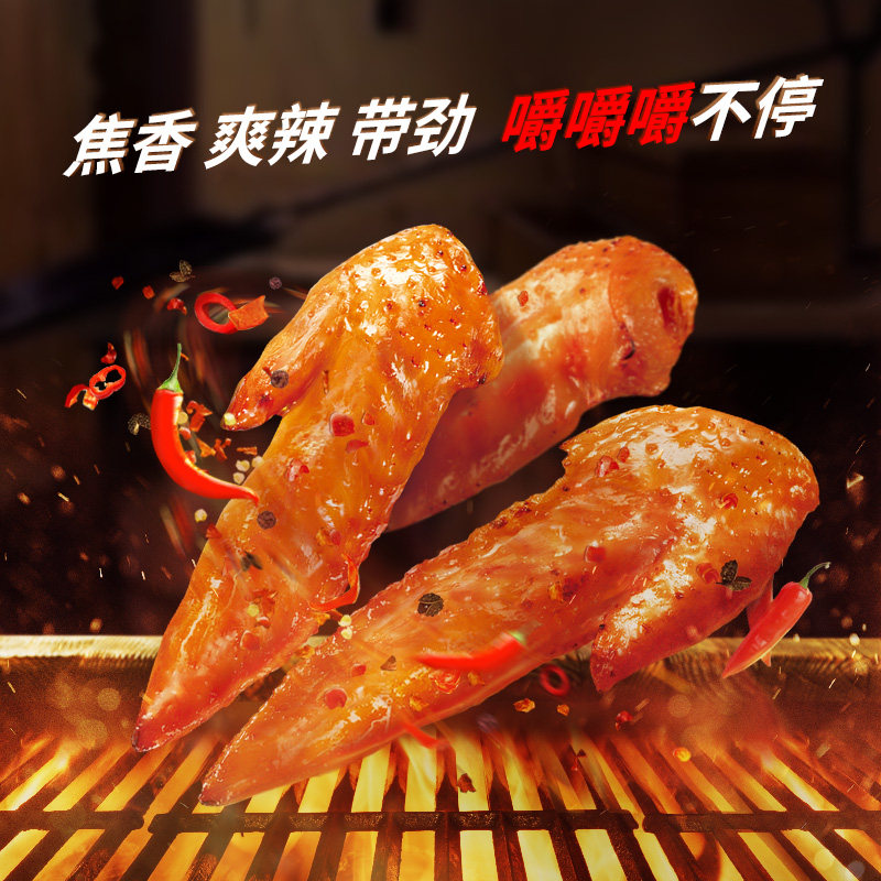 无穷香辣味烤鸡小翅50g*3袋/36只鸡翅尖辣味零食小吃特产肉食熟食