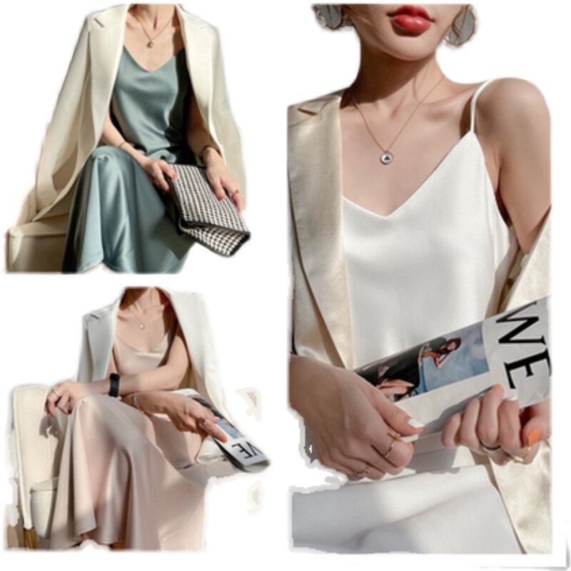 三醋酸真丝法式吊带设计感小众连衣裙女春内搭长裙修身缎面吊带裙