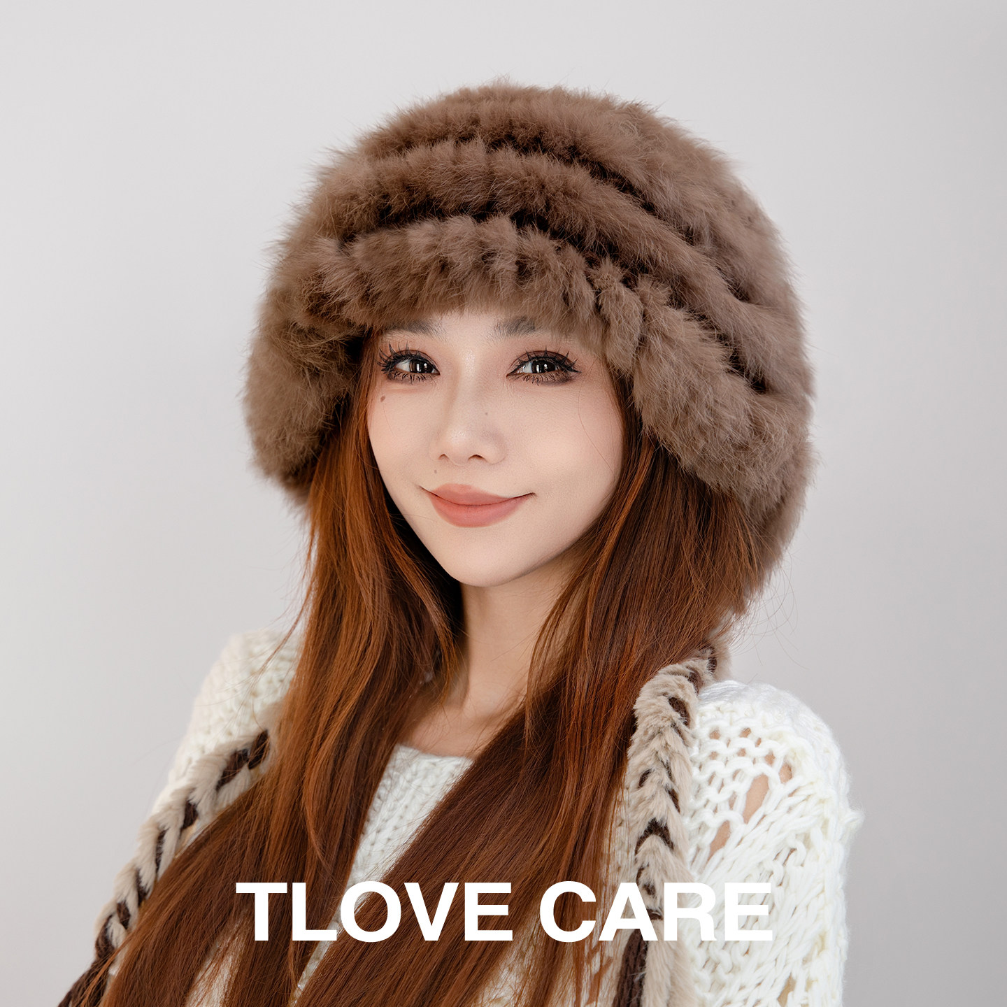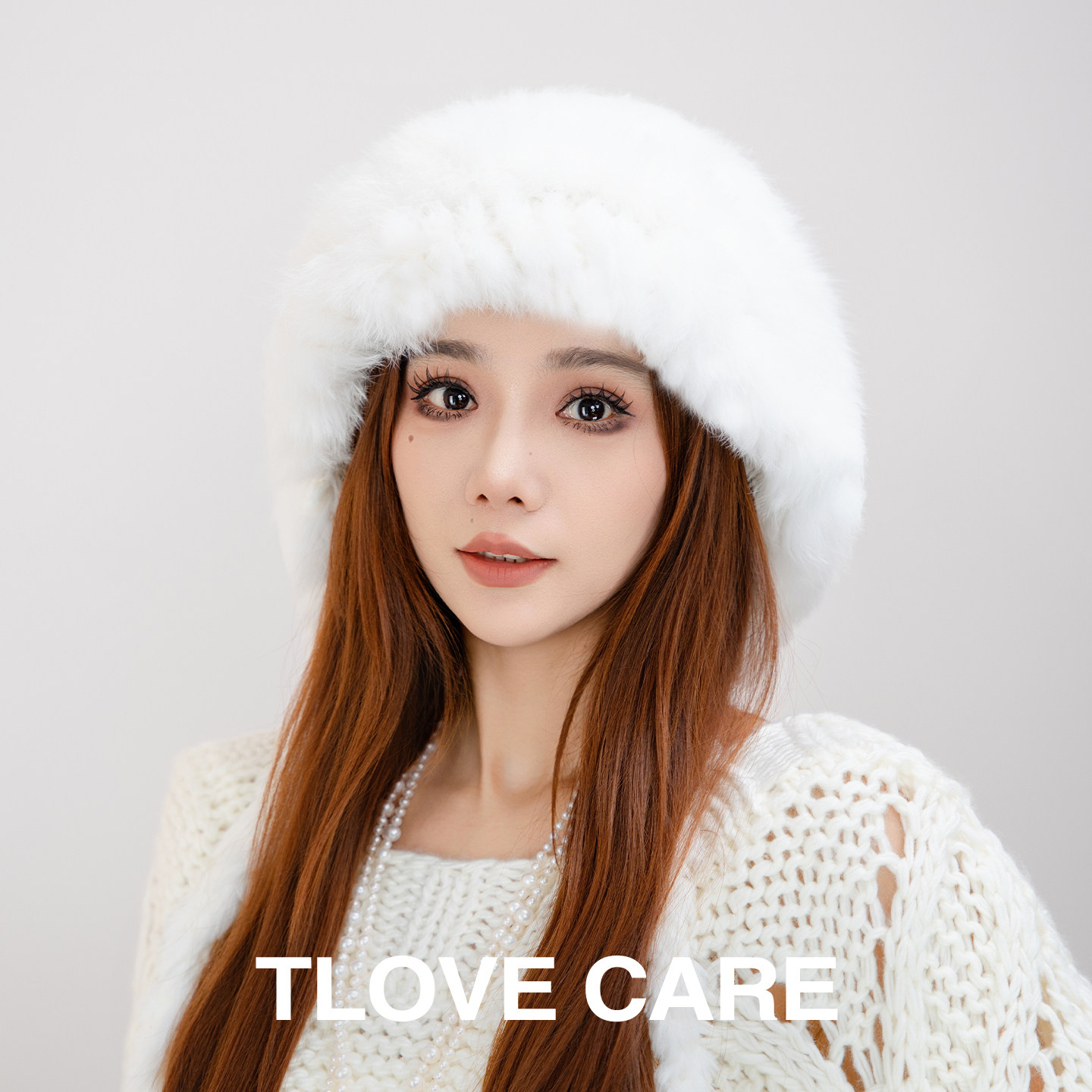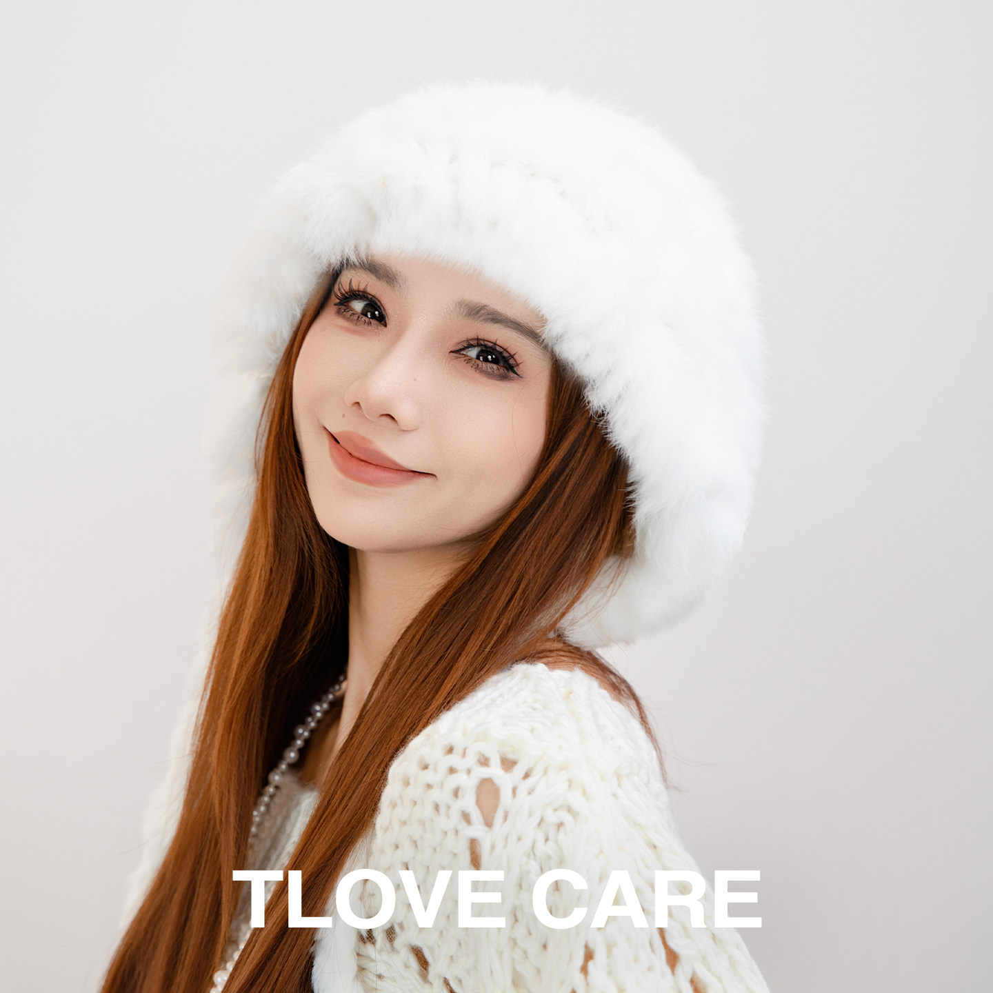9771+TLOVE秋冬兔毛包头帽女保暖毛绒帽子软糯护耳帽