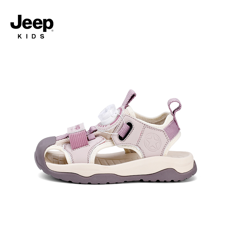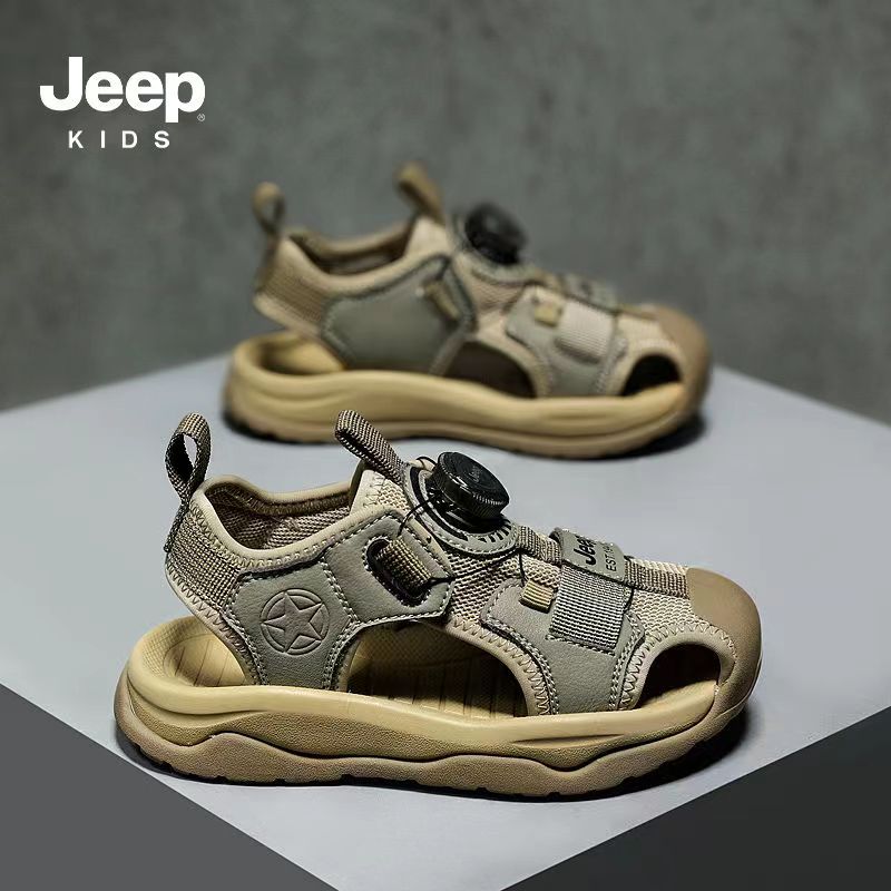 jeep男童运动凉鞋夏季镂空女童鞋2025新款软底防滑儿童包头沙滩鞋