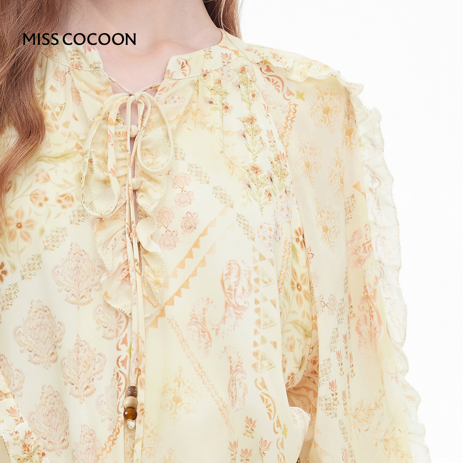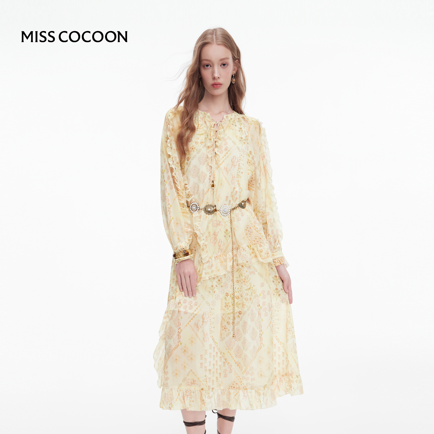 MISSCOCOON可可尼荷叶边裙子女2025秋季新款度假浪漫泡泡袖连衣裙
