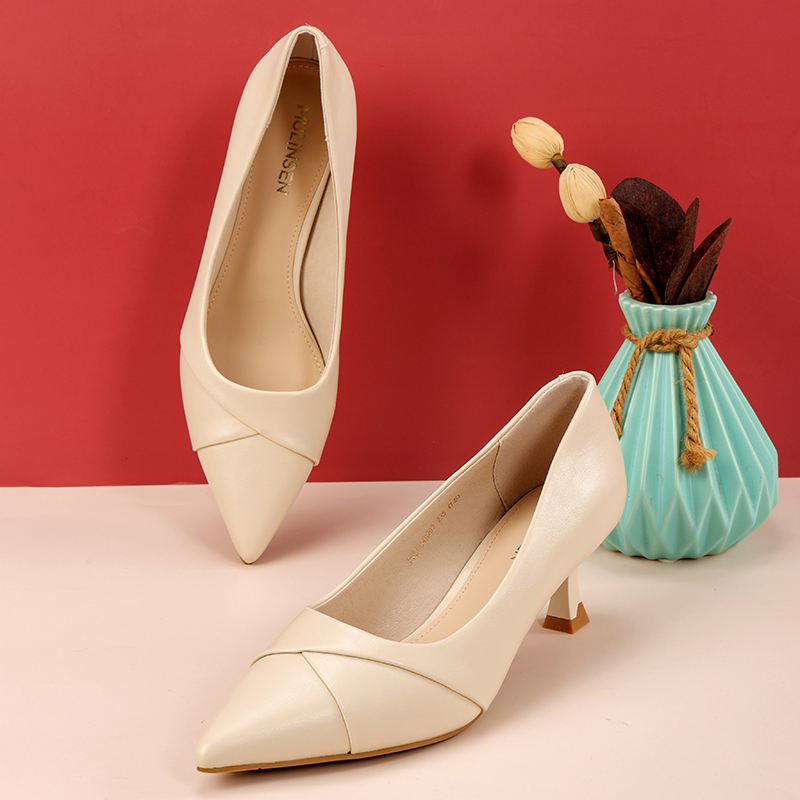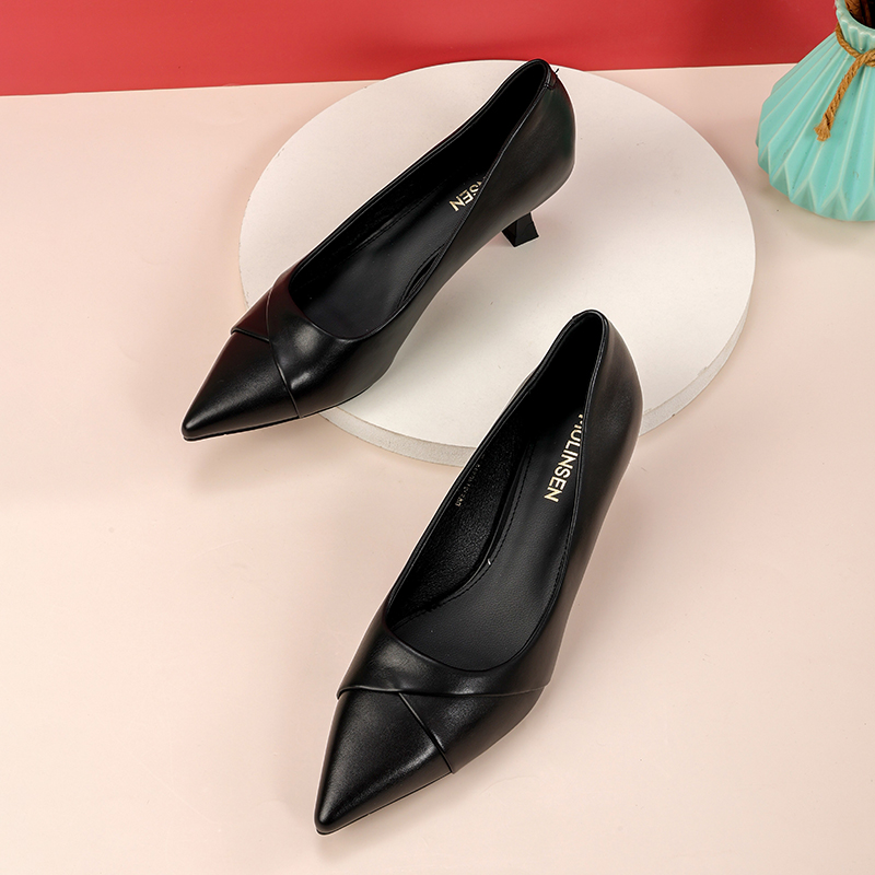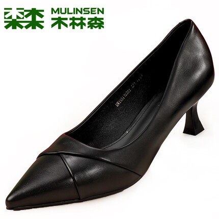 木林森2023年秋季新款时尚高跟尖头通勤单鞋百搭女士细跟气质单鞋