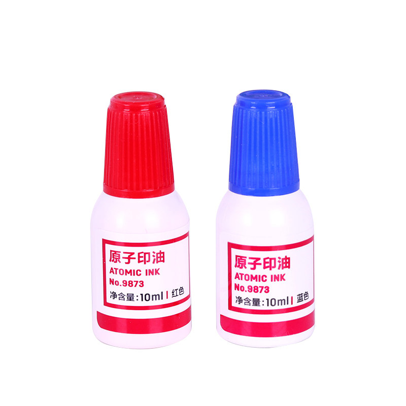 3瓶装得力原子印油 红色蓝色快干印泥油补充油印章油墨水批发万次章油9873快干不掉色财务用品