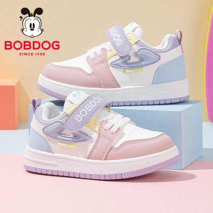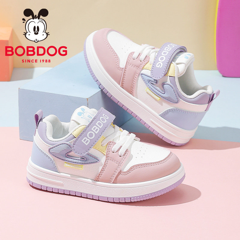 巴布豆童鞋女童板鞋2025春秋新款皮面防水儿童运动鞋女孩休闲鞋子