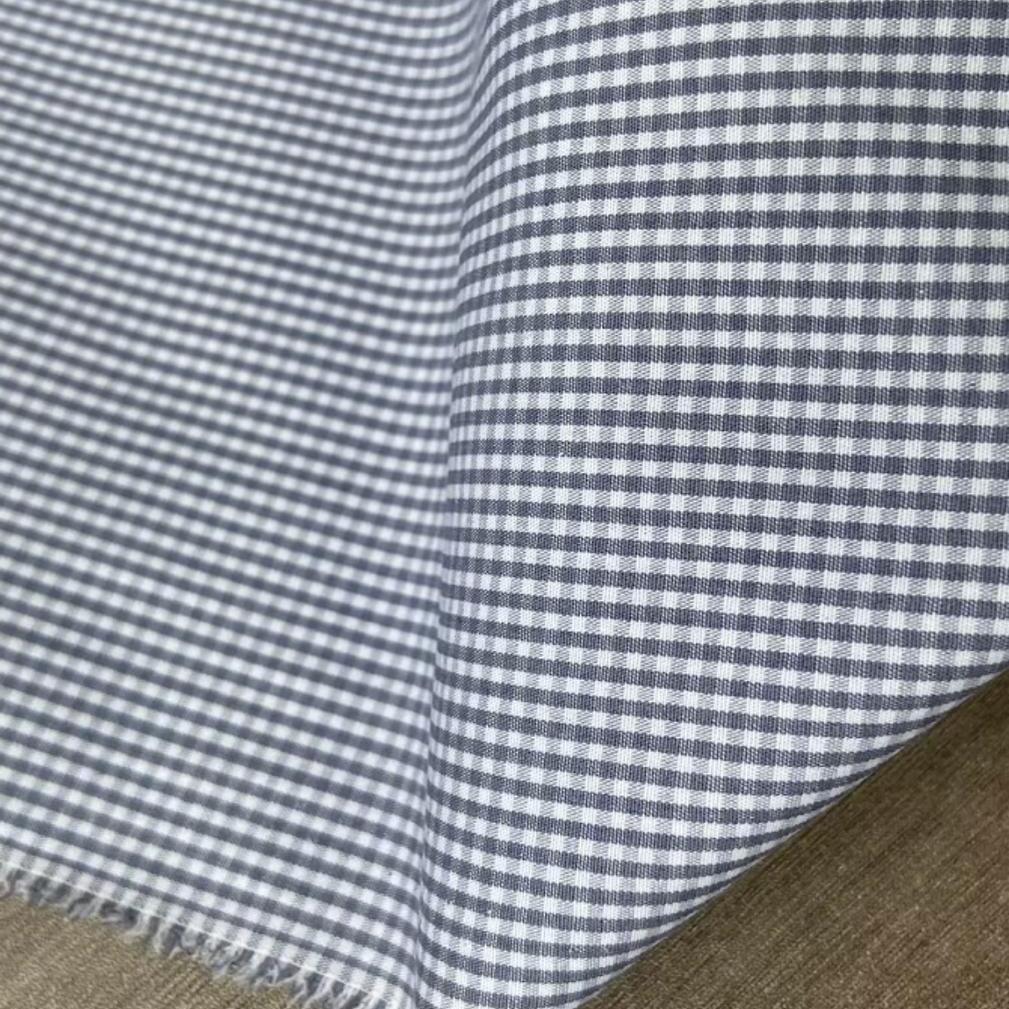 进口灰蓝白小格子棉涤清爽棉布春秋款文艺风定制衬衫裙子里衬布料