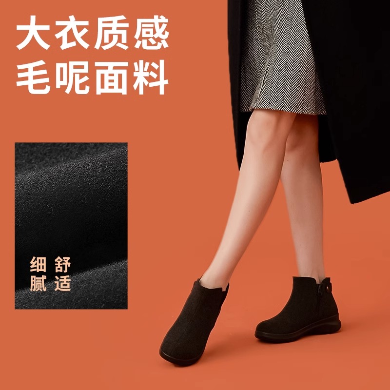 Pansy盼洁日本短靴女休闲百搭单靴轻平底高帮鞋拉链妈妈靴子秋冬