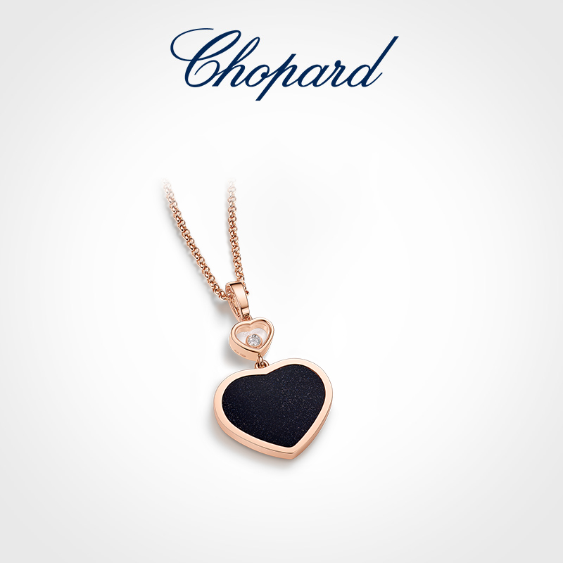 Chopard萧邦18K玫瑰金午夜蓝色爱心钻石项链吊坠礼物官方正品