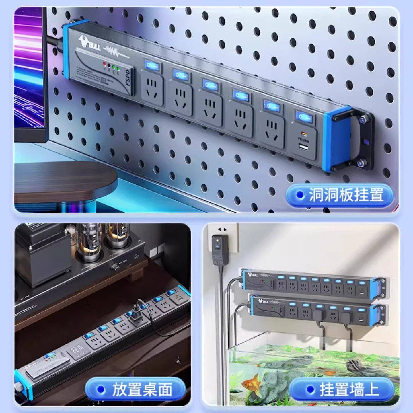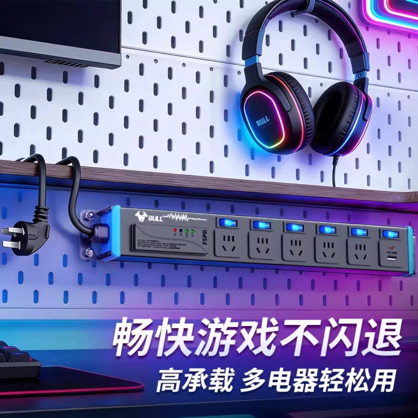 公牛】洞洞板专用电竞PDU插排
