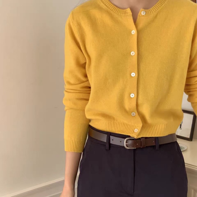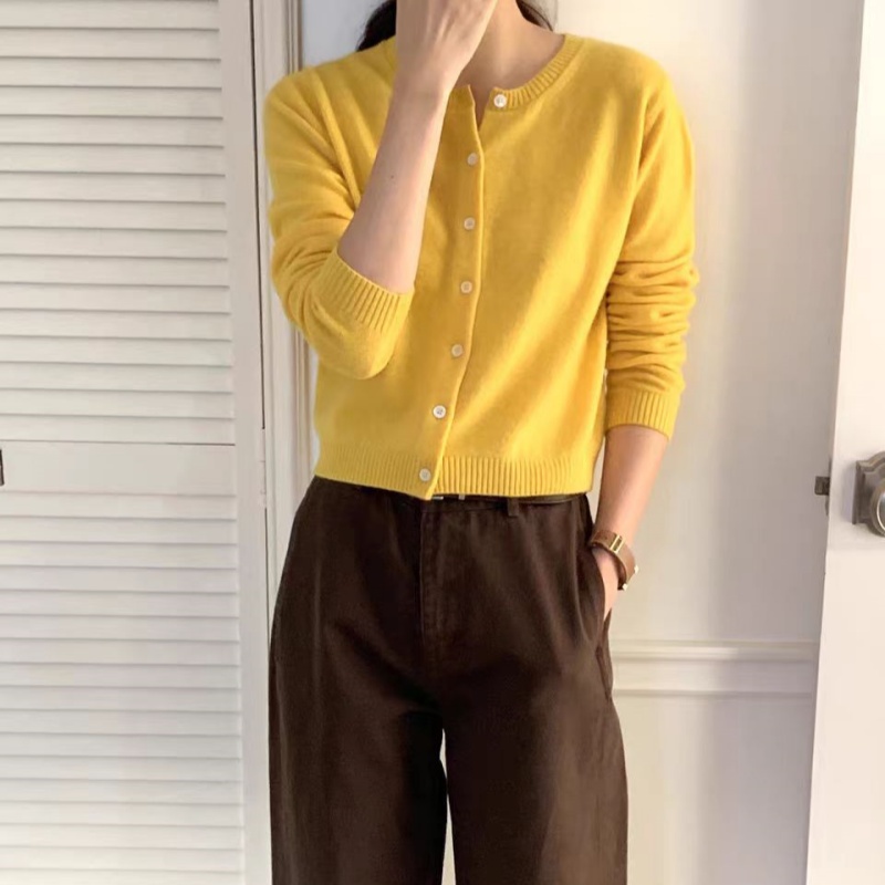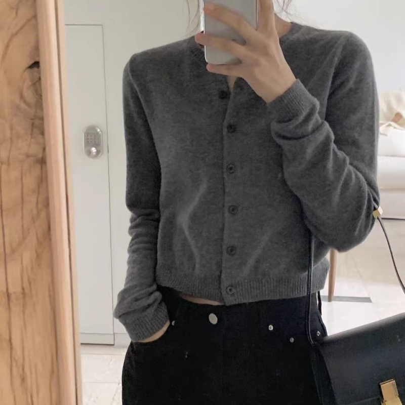 复古高级感山羊绒针织开衫女短款高腰小外套秋冬圆领百搭羊毛上衣