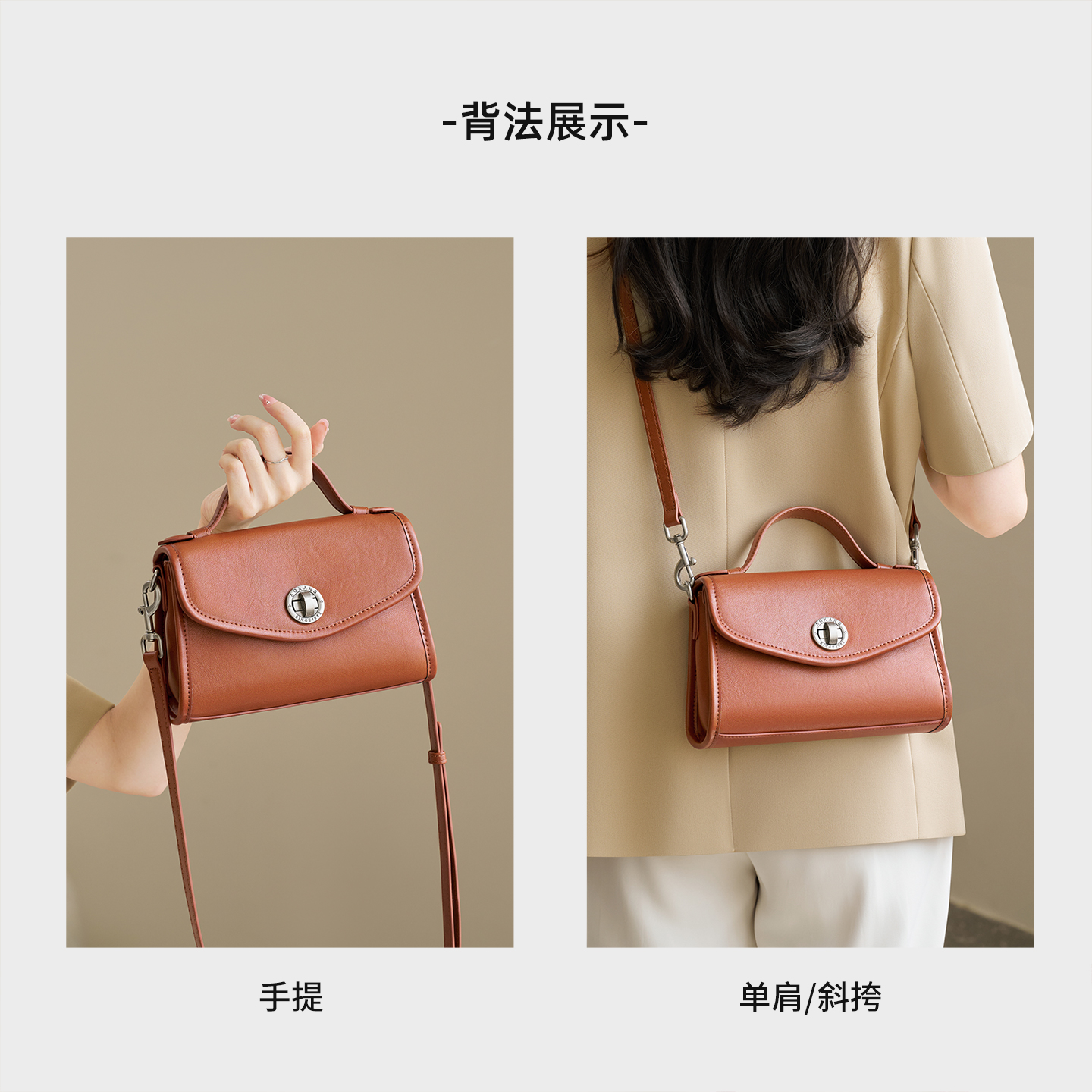 奥康小方包2025新款手提包包真皮单肩包高级斜挎包植鞣牛皮邮差包