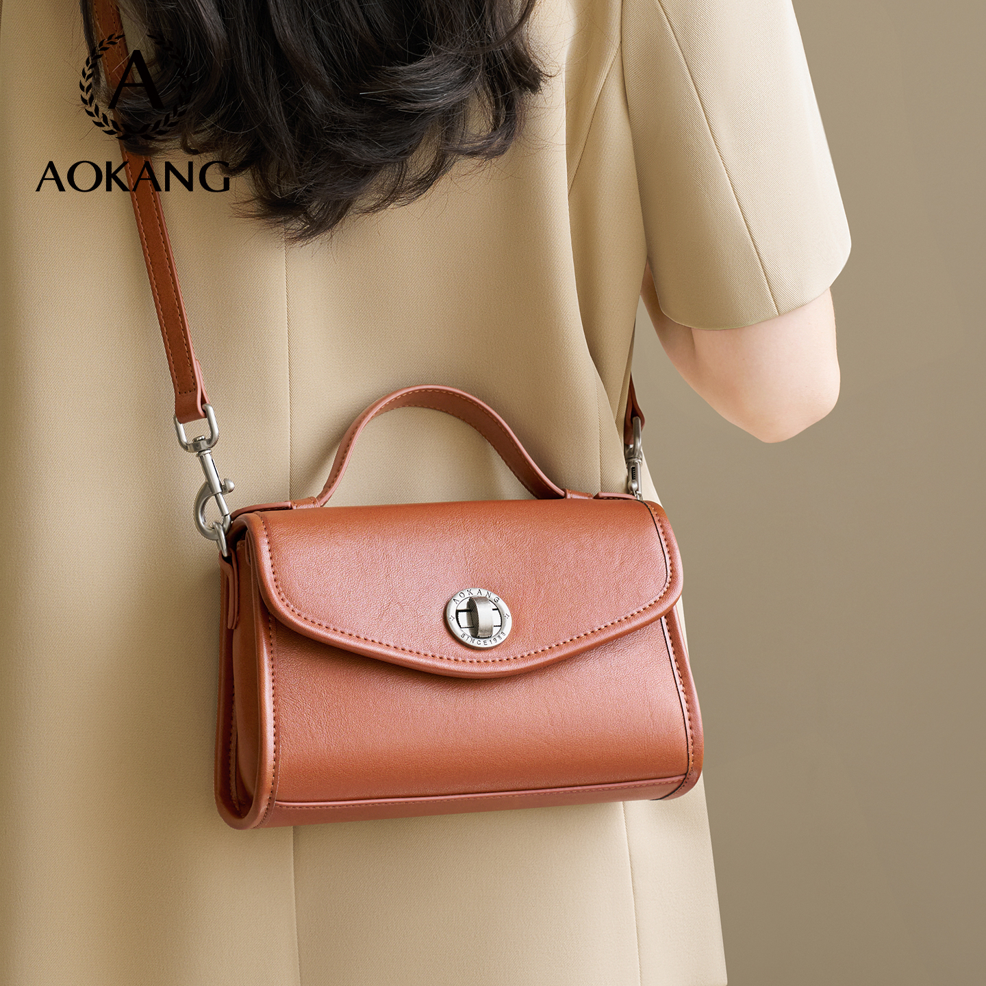 奥康小方包真皮高级休闲单肩包