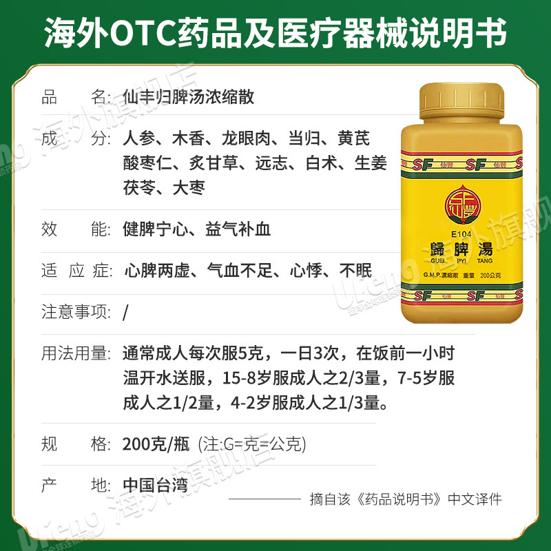 台湾仙丰中药归脾汤倪海厦健脾益气补血失眠心悸月经不调旗舰店