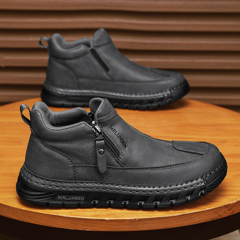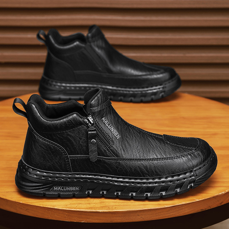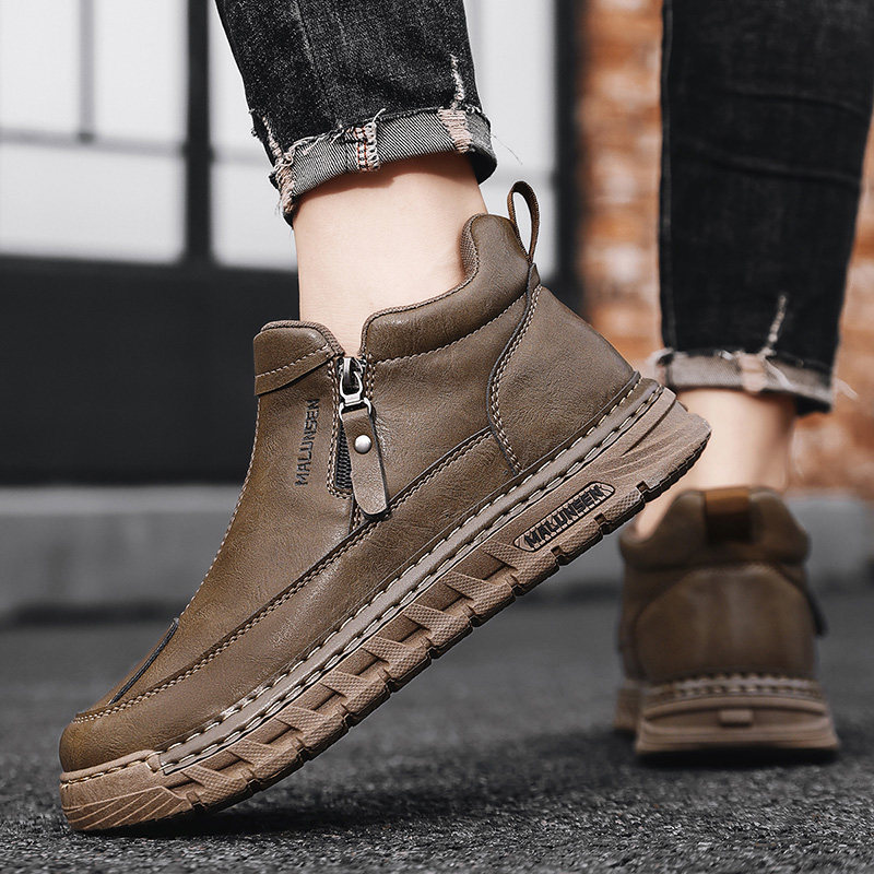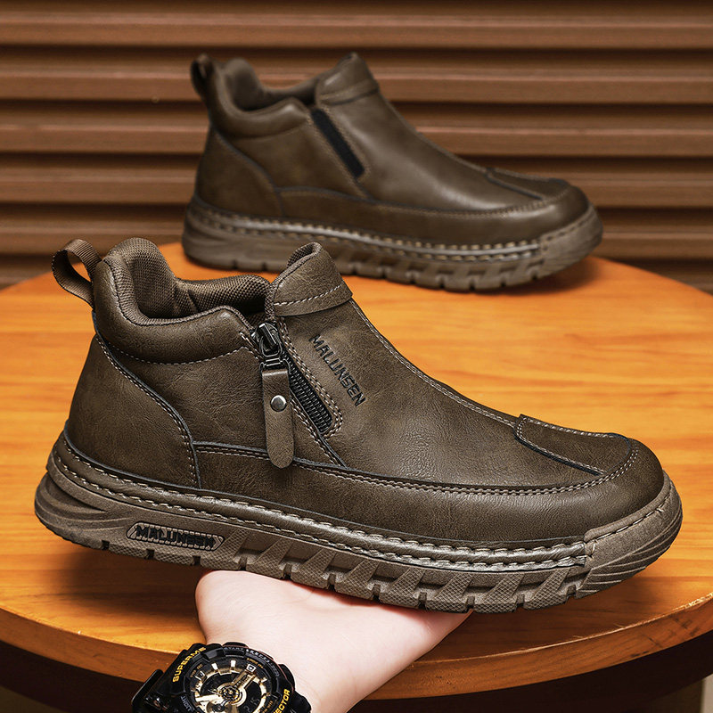 男鞋2025新款冬季英伦复古棕色休闲皮鞋厚底男士上班工作劳保潮鞋