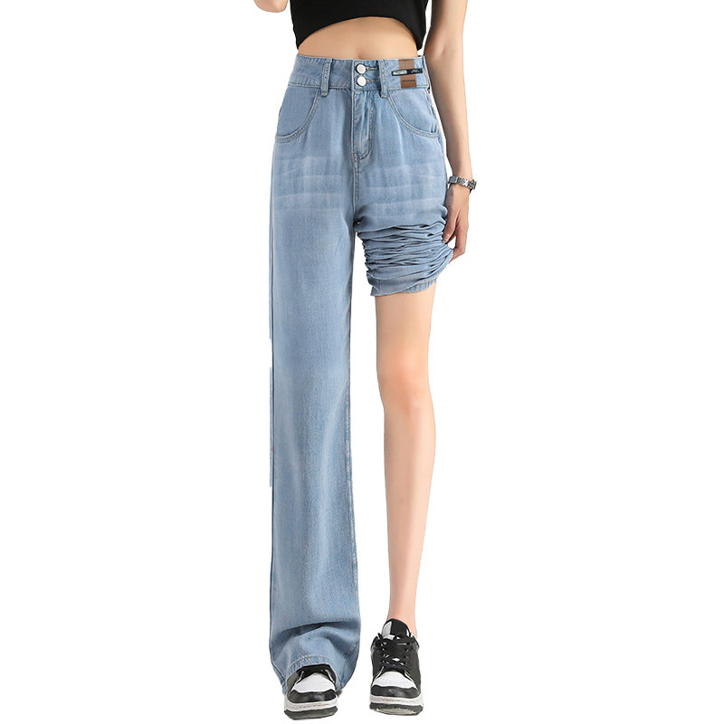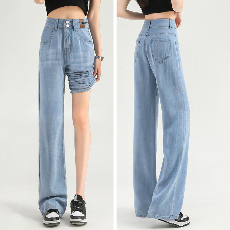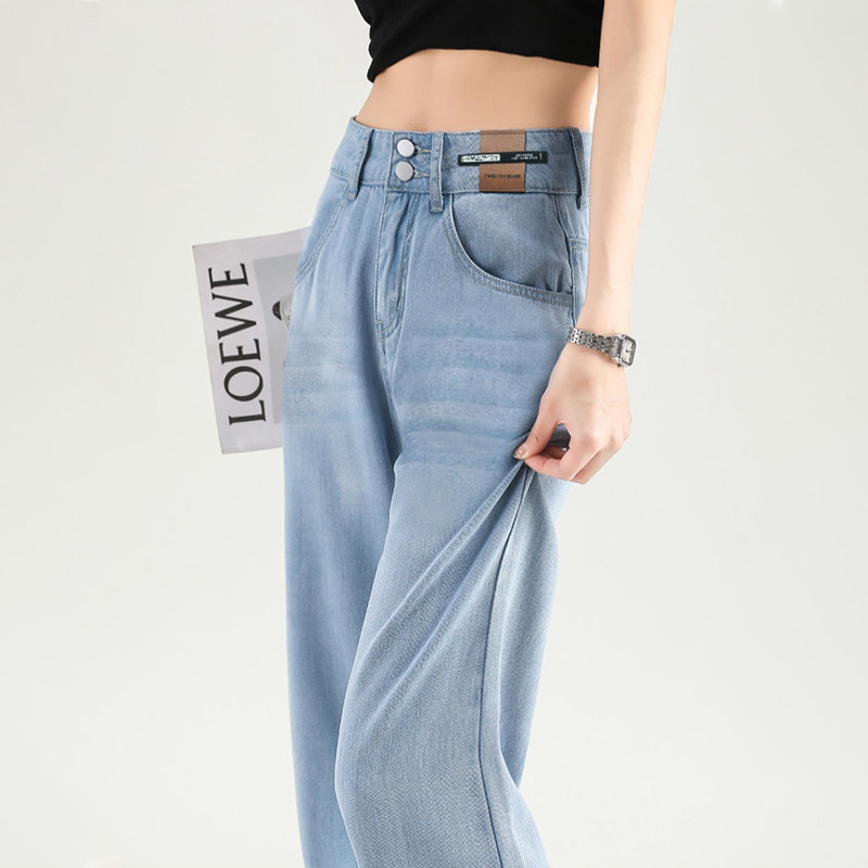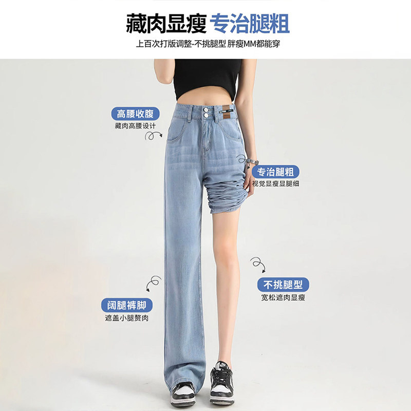 KP真维斯女装天丝牛仔裤秋季薄款莱赛尔小个子宽松直筒休闲长裤女