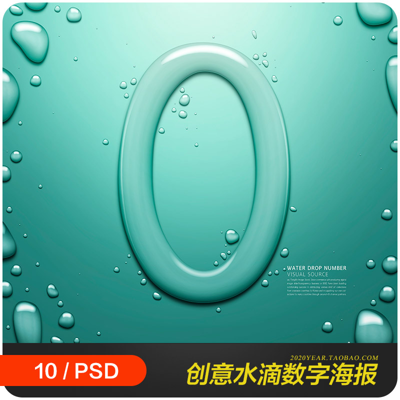 创意水滴水珠数字透明效果海报背景psd分层设计素材源文件9102901
