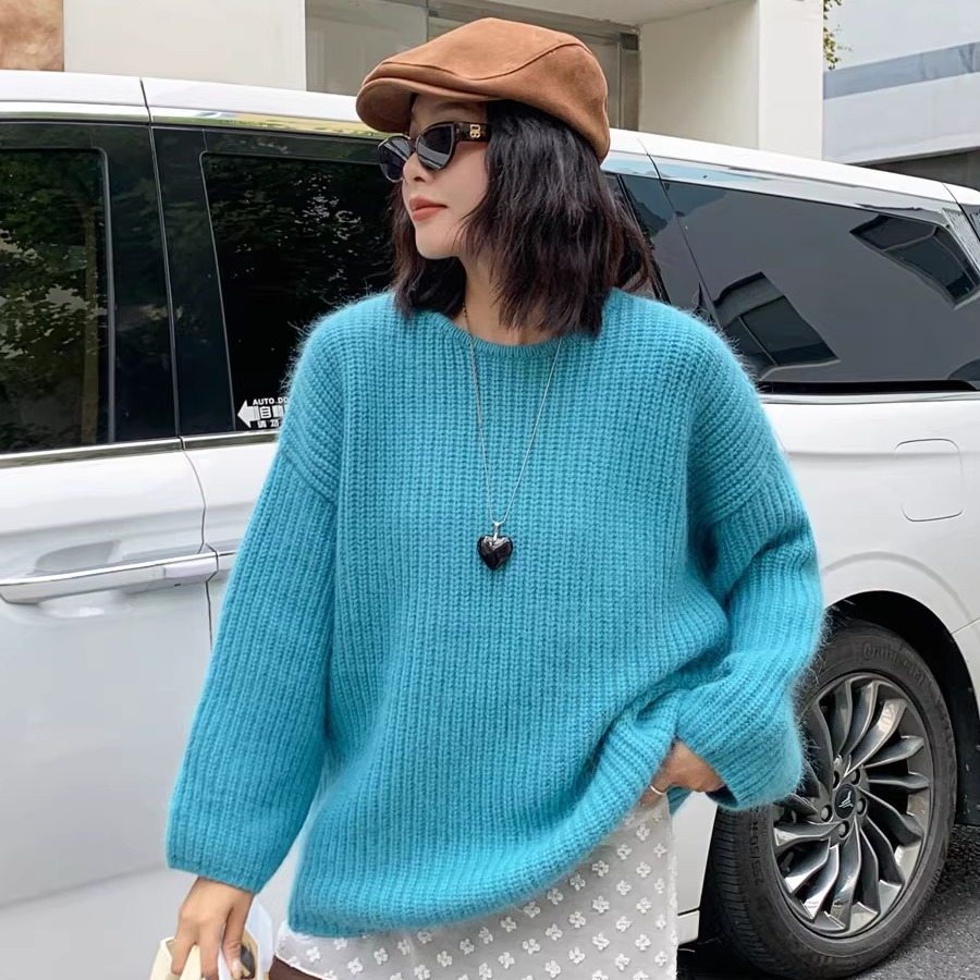 韩系慵懒风浣熊绒毛衣女秋冬新款宽松显瘦圆领套头针织衫上衣外套