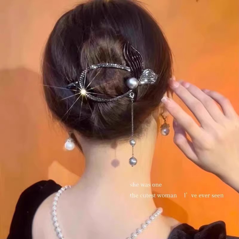 [下单立减20]精致鱼尾流苏扭扭夹后脑勺盘发高级感气质发夹YJ