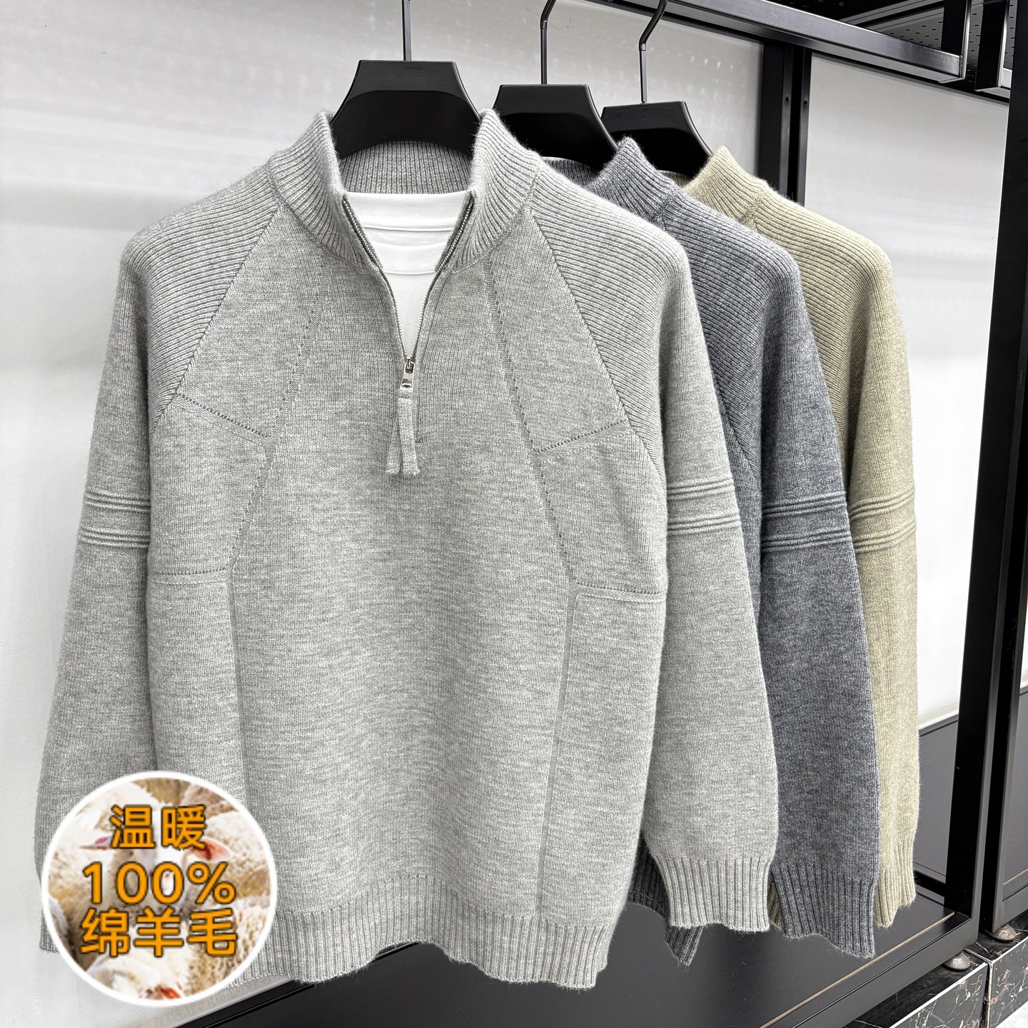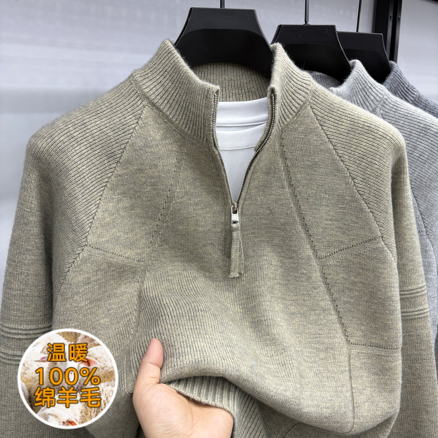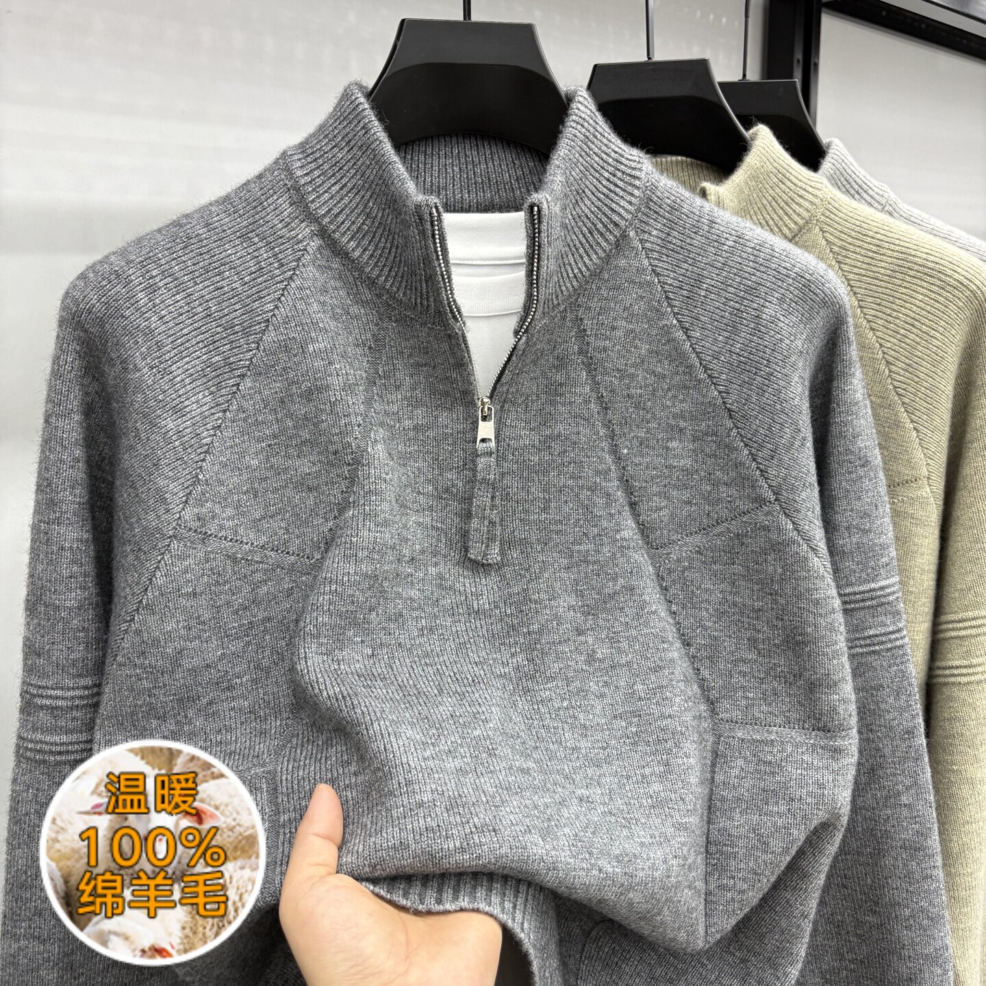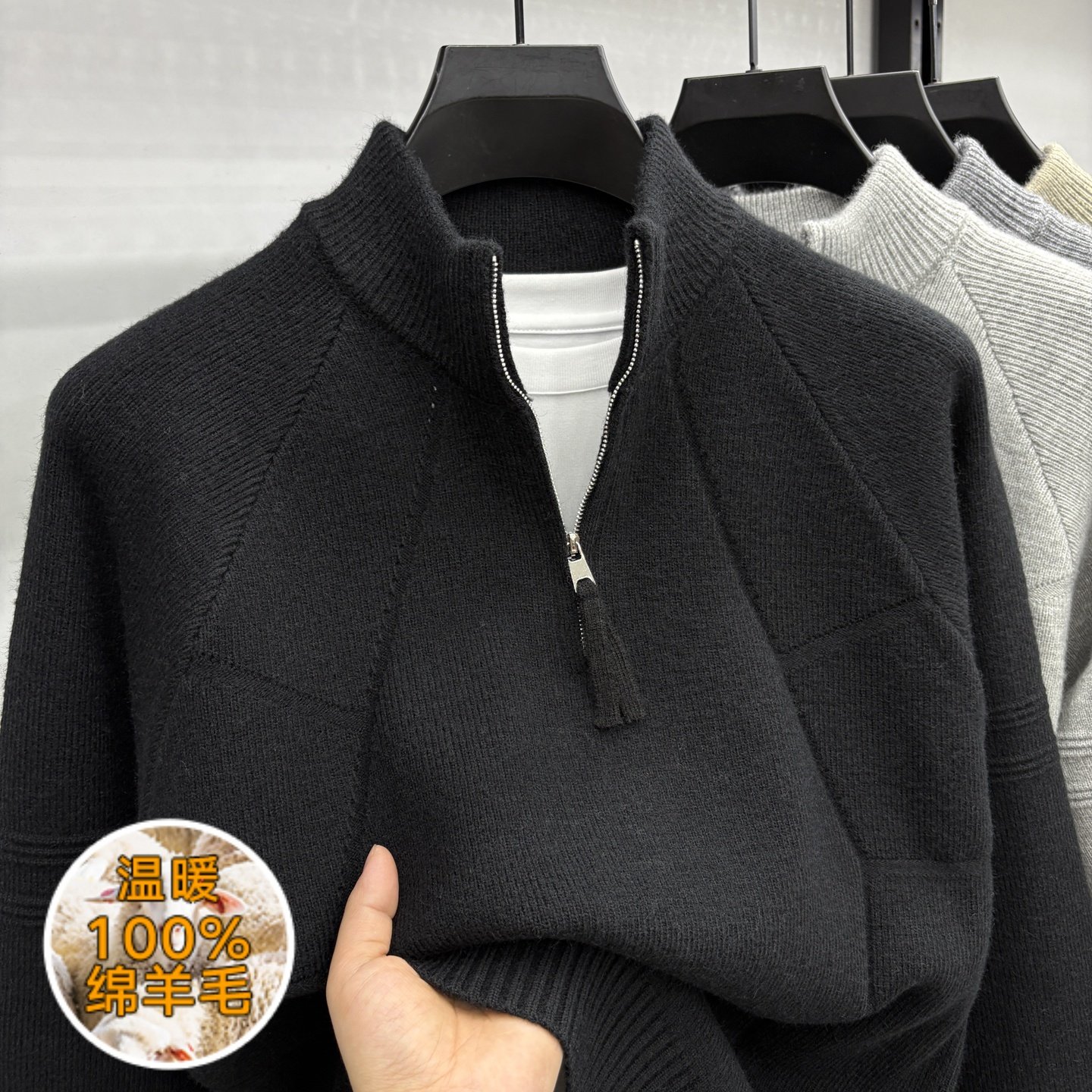 加厚纯羊毛衫男鄂尔多斯市半拉链立领针织衫冬季保暖毛衣打底衫