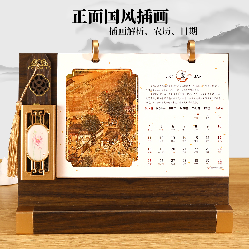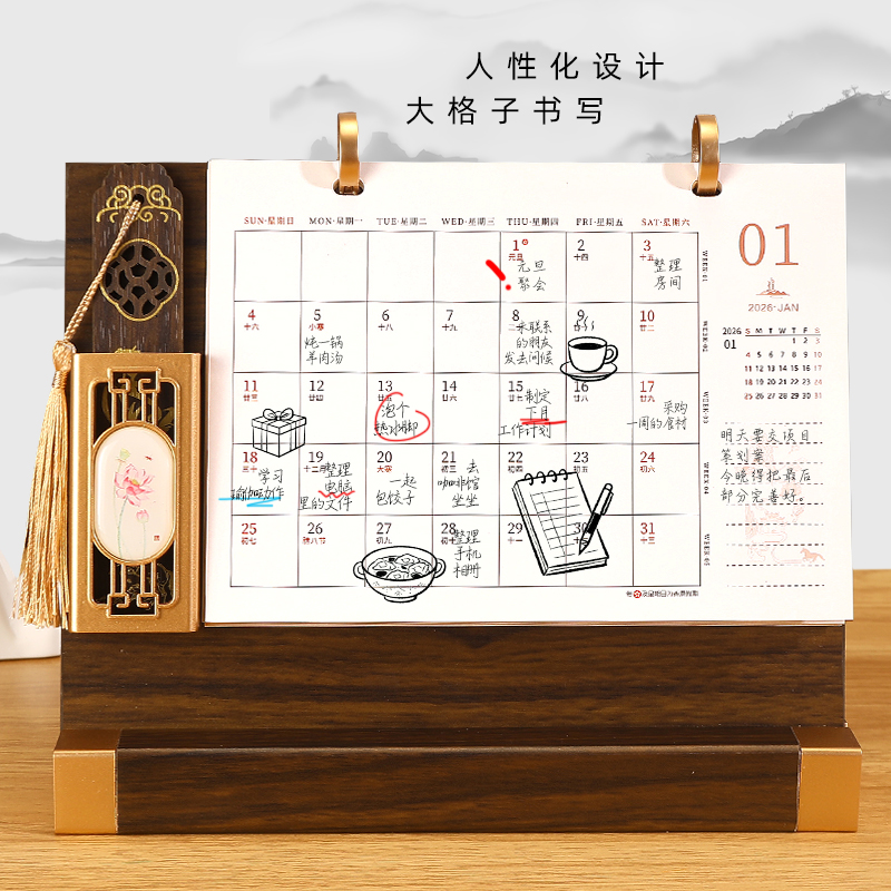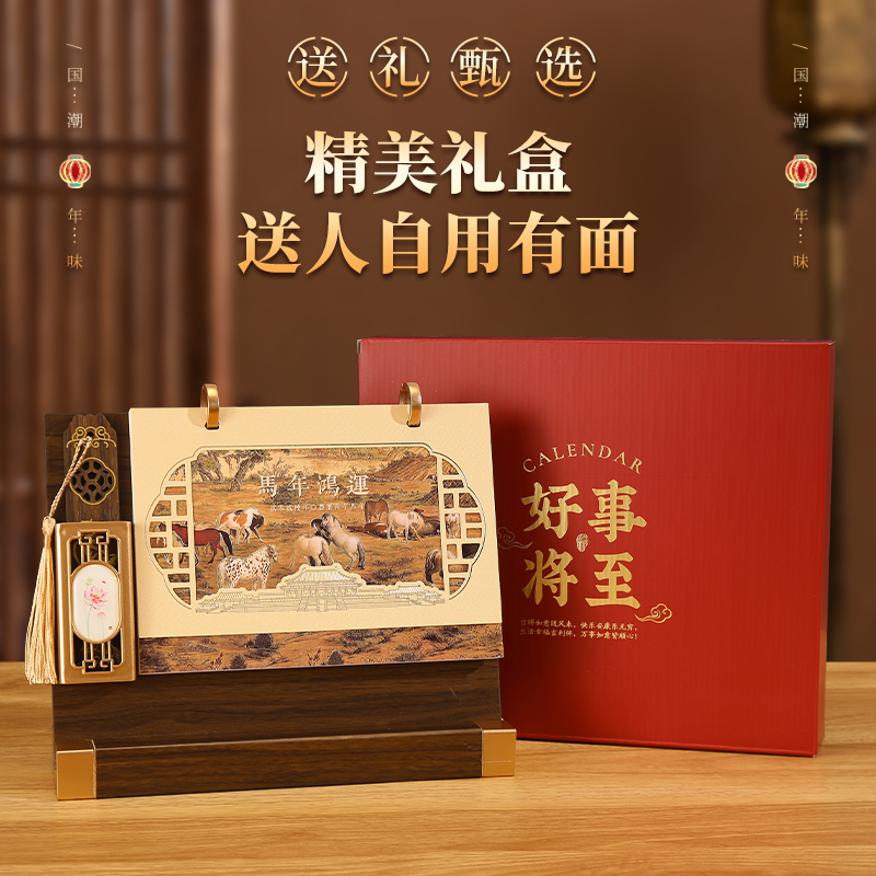台历定制2026年马年新款创意木质桌面摆件订制办公室记事月历礼盒装自律打卡计划本印刷商务日历公司定做logo