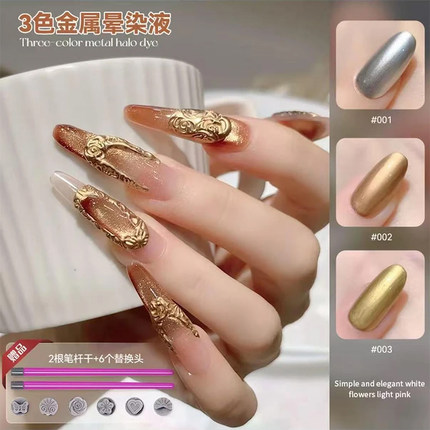 硅胶头美甲印章笔金属晕染液造型套装蝴蝶花可替换转印头美甲工具