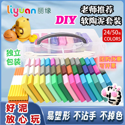 24色软陶泥套装50色环保彩泥儿童泥塑粘土学生幼儿园手工diy材料