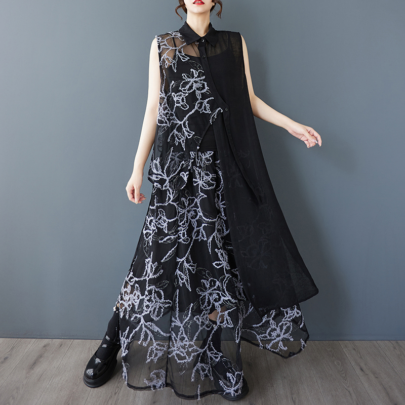 夏季新款宽松设计感重工提花拼接不规则衬衫百搭半身裙两件套