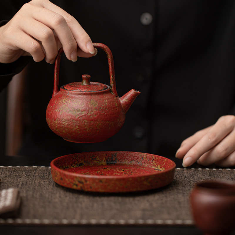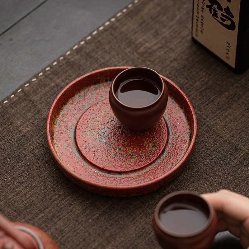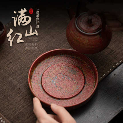 老岩泥满山红圆满壶承 中式复古茶壶托盘家用小型干泡盘茶道配件