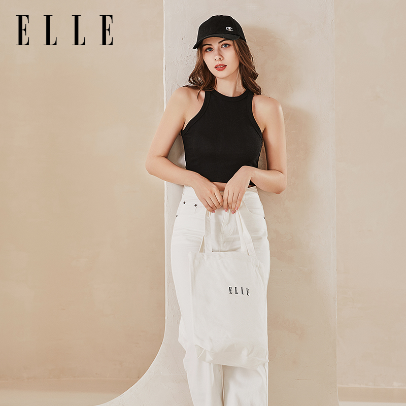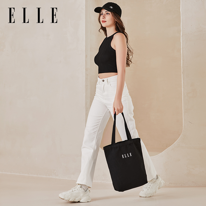 ELLE新款帆布包女时尚帆布袋单肩手提包收纳袋环保购物袋字母包包