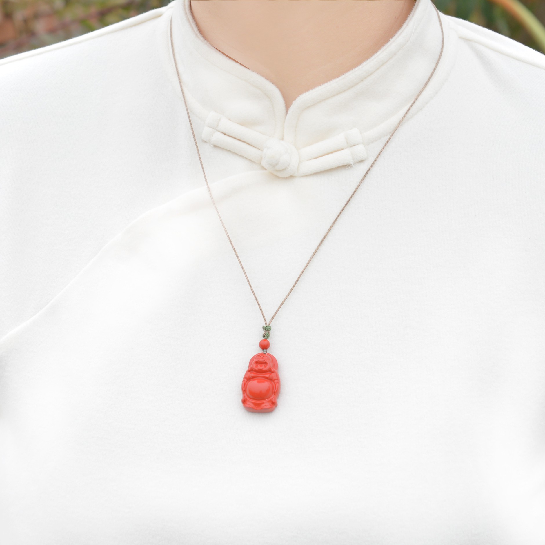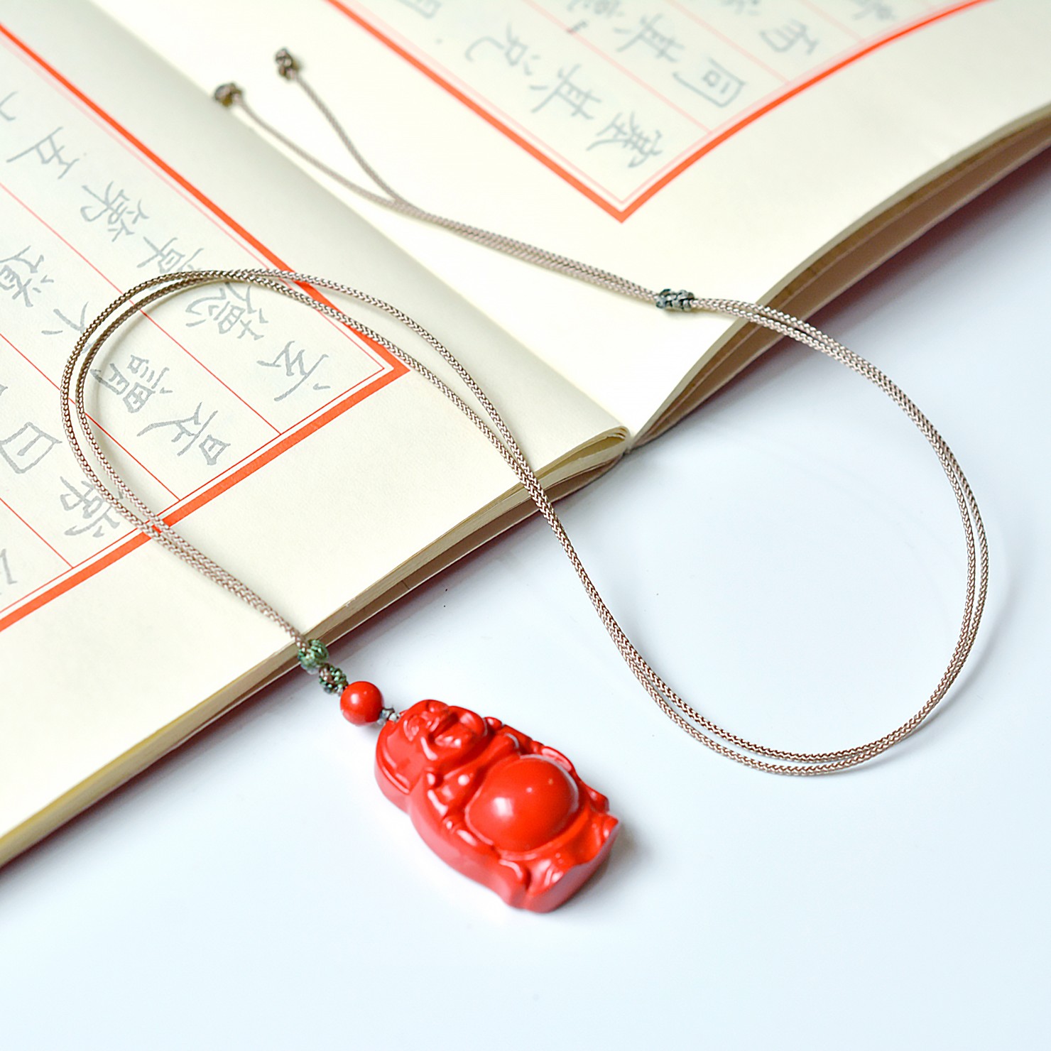 天然正品朱砂弥勒佛吊坠帝王砂笑佛挂件男女款本命年大肚佛毛衣链