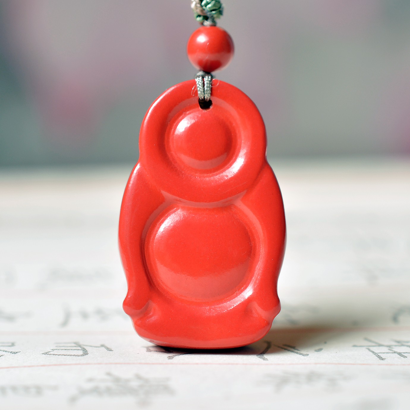 天然正品朱砂弥勒佛吊坠笑佛挂件