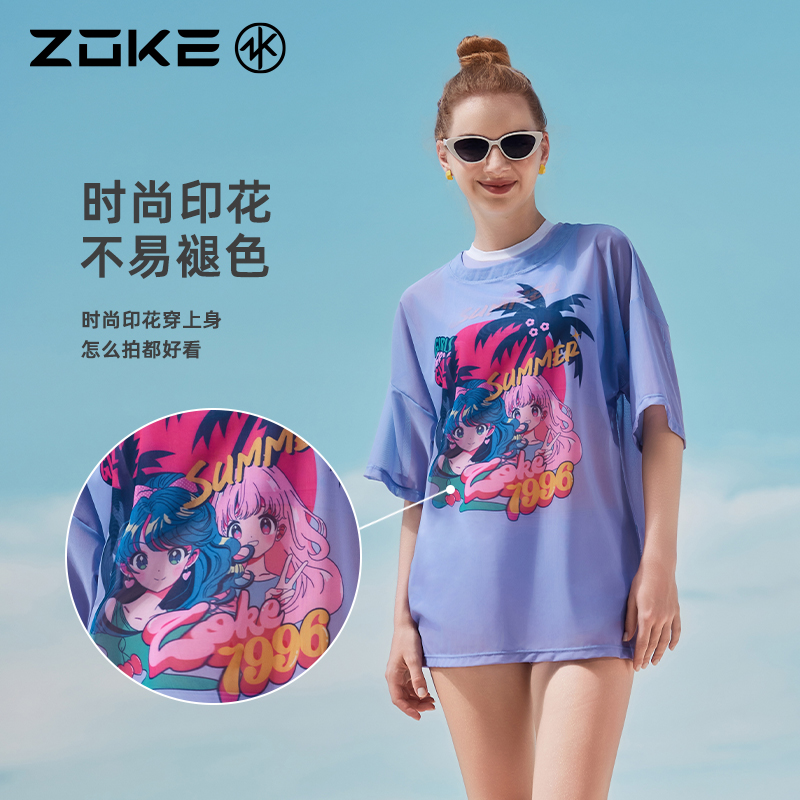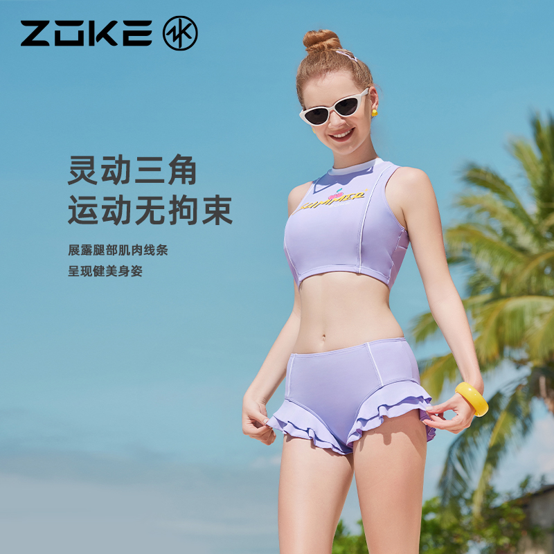 洲克女士泳衣女防晒保守短裤zoke女孩泳装三件套显瘦泡温泉游泳衣