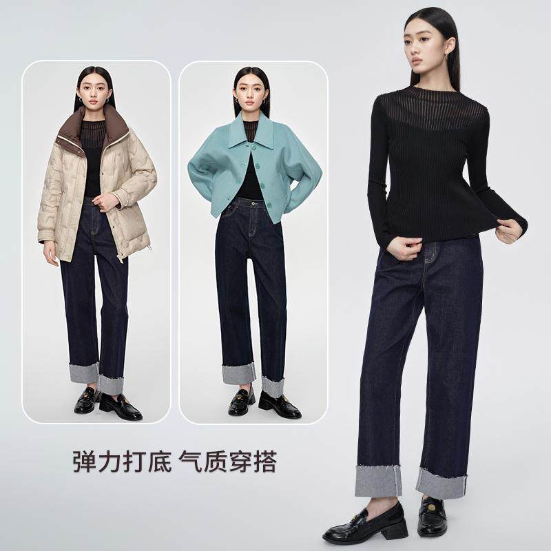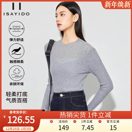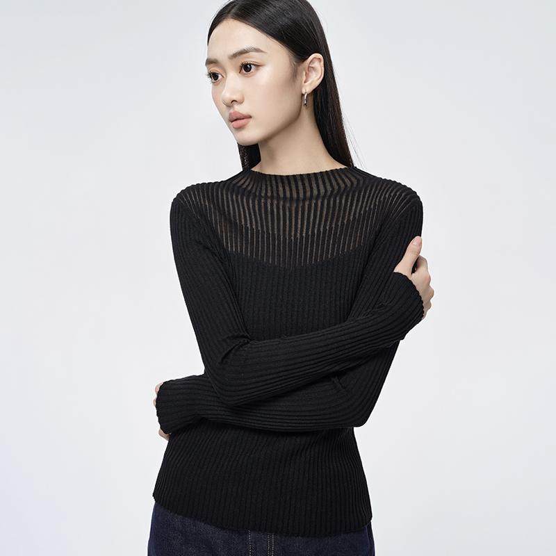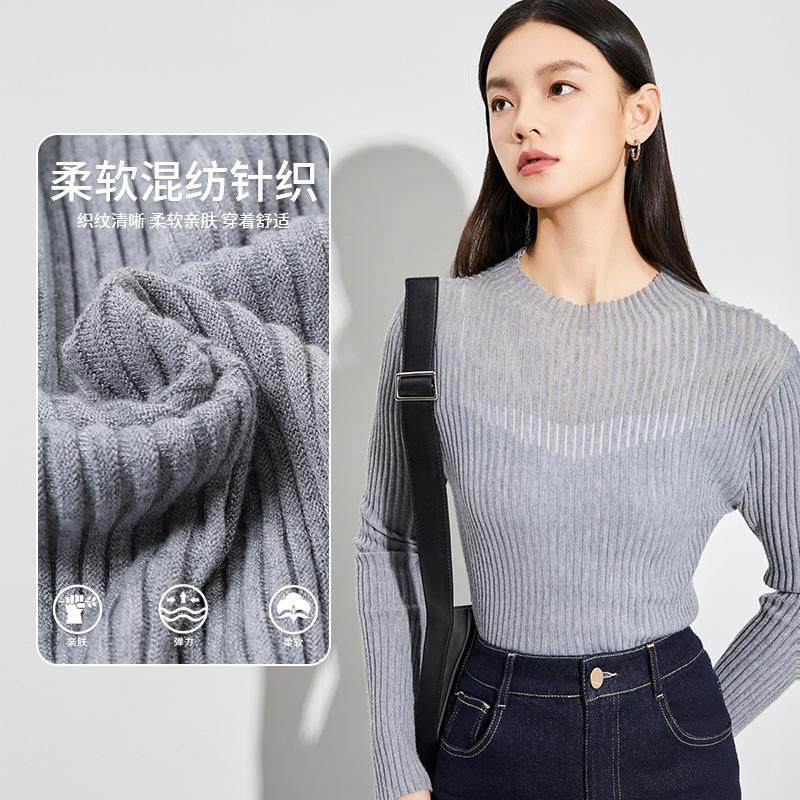 傲丝度半高领打底衫女春秋修身内搭针织衫条纹灰色套头毛衣薄款