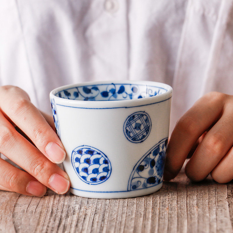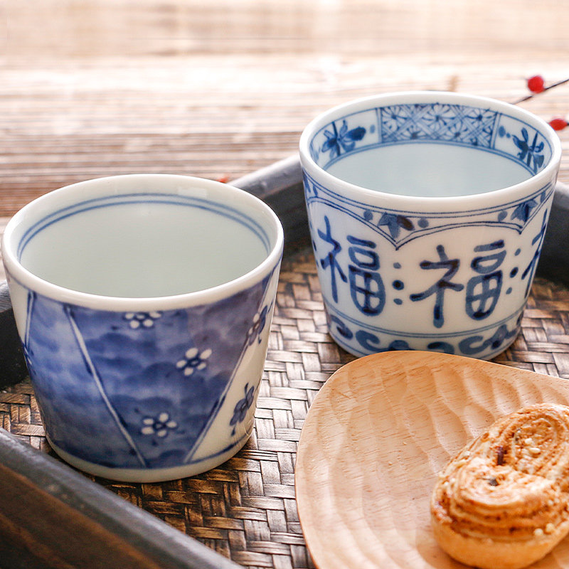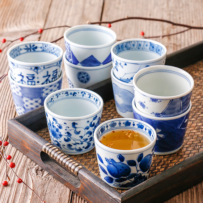 爱悦居日本进口陶瓷日式家用汤吞杯荞麦杯茶杯和风青花单杯小杯子